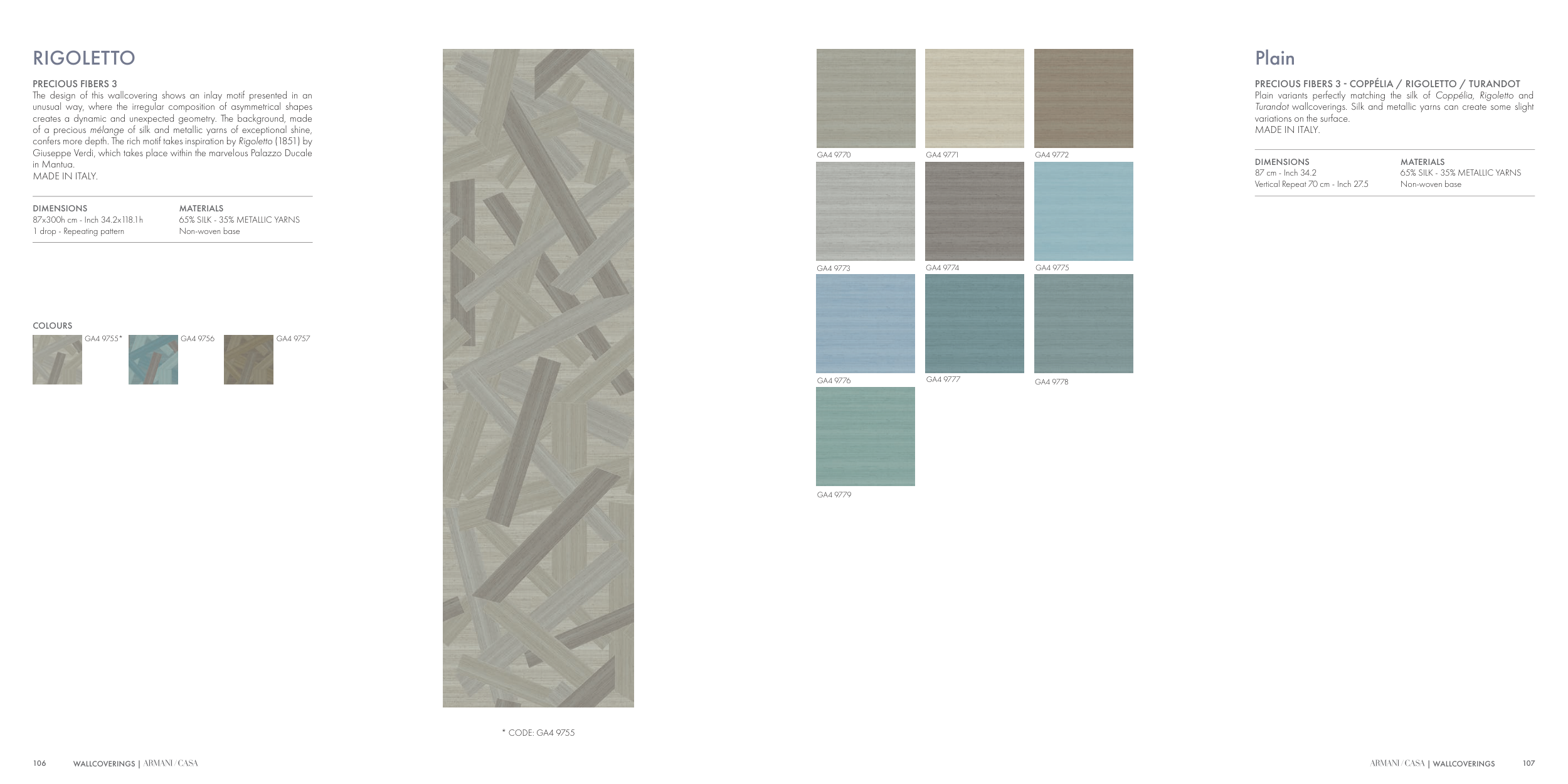 Plain variants perfectly matching the silk of Coppélia, Rigoletto and