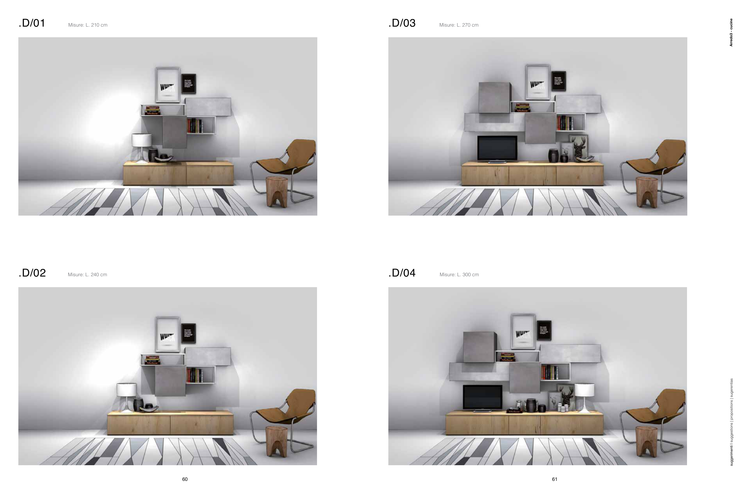 61 Arredo3 - cucine suggerimenti | suggestions | propositions | sugerentias 60 .D/02 Misure: L. 240 cm .D/04 Misure: L. 300 cm .D/01 Misure: L. 210 cm .D/03 Misure: L. 270 cm