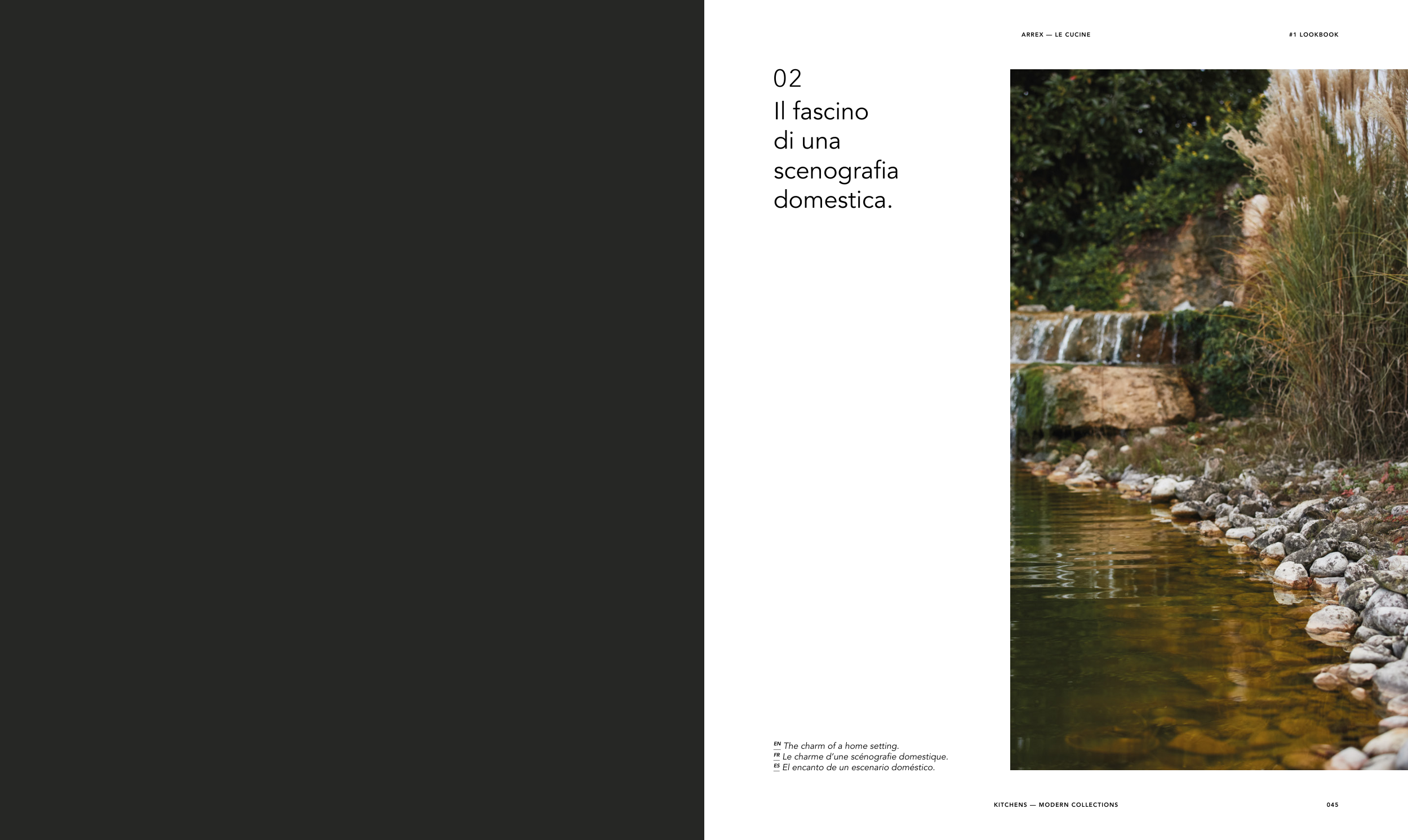 045 #1 LOOKBOOK KITCHENS — MODERN COLLECTIONS ARREX — LE CUCINE Il fascino di una scenografia domestica. 02 EN The charm of a home setting. FR Le charme d’une scénografie domestique. ES El encanto de un escenario doméstico.