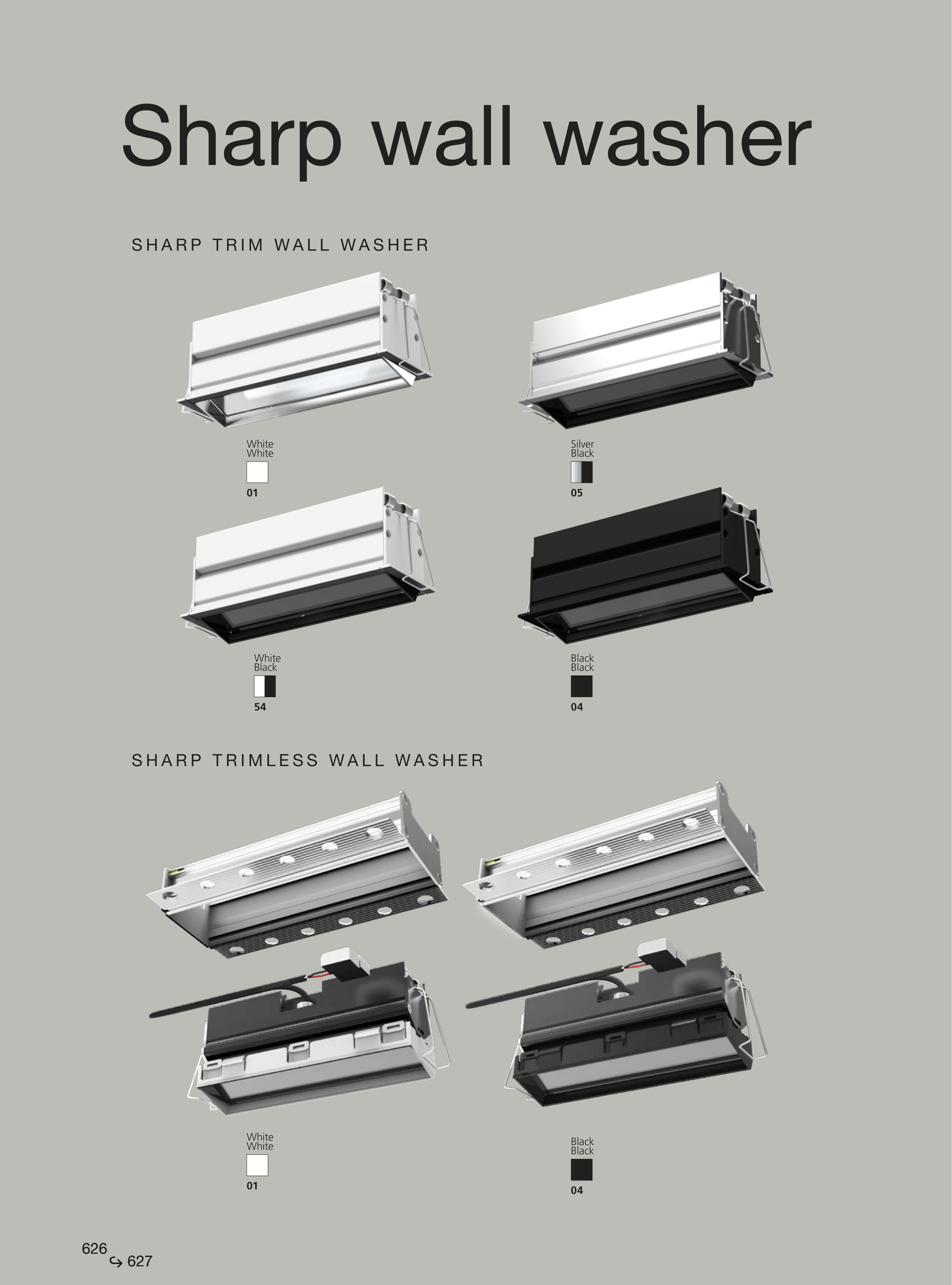 Black Black 04 Black Black 04 White White 01 White White 01 S H A R P T R I M W A L L W A S H E R S H A R P T R I M L E S S W A L L W A S H E R Silver Black 05 White Black 54 Sharp wall washer 626 627 626 627