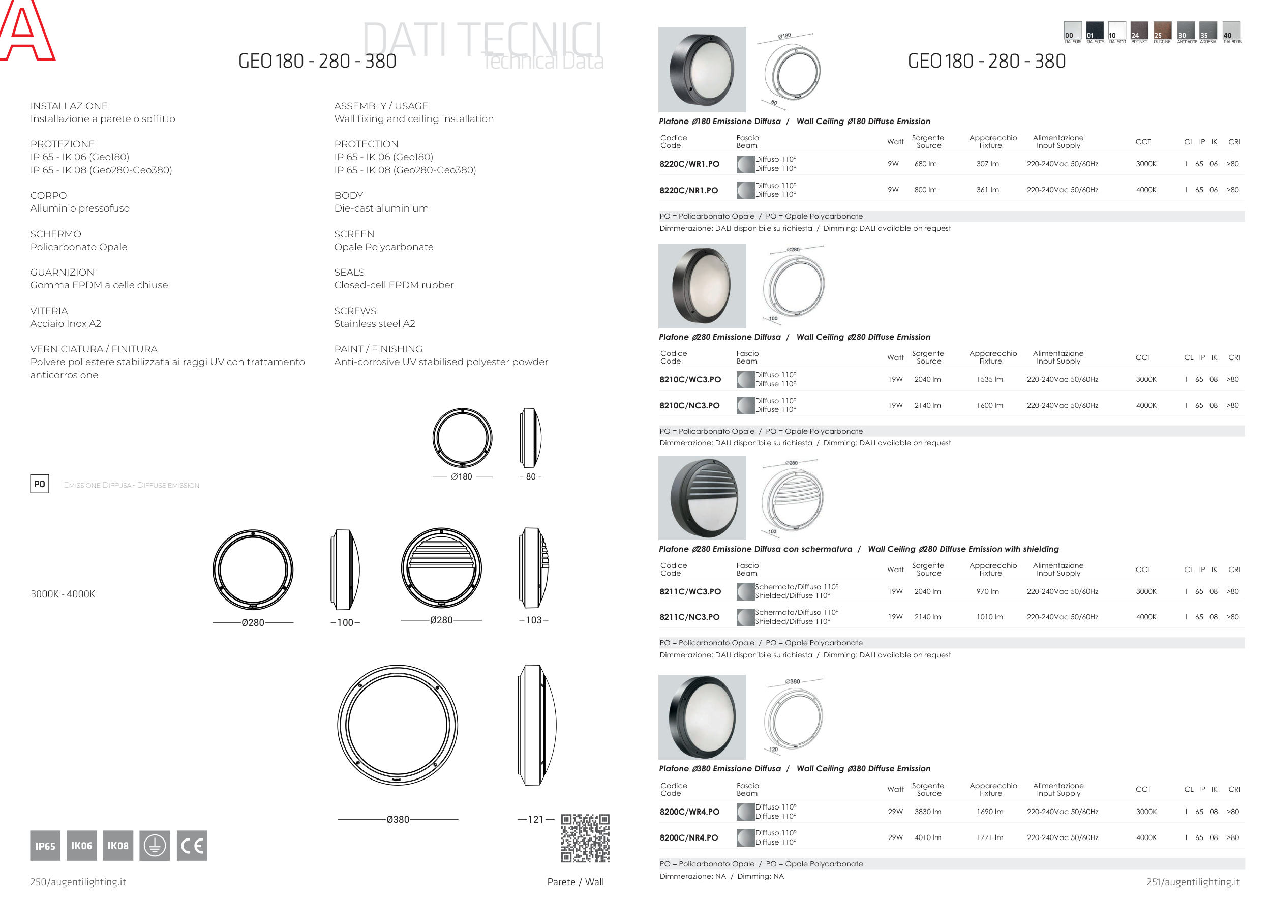 IP 65 - IK 08 (Geo280-Geo380)