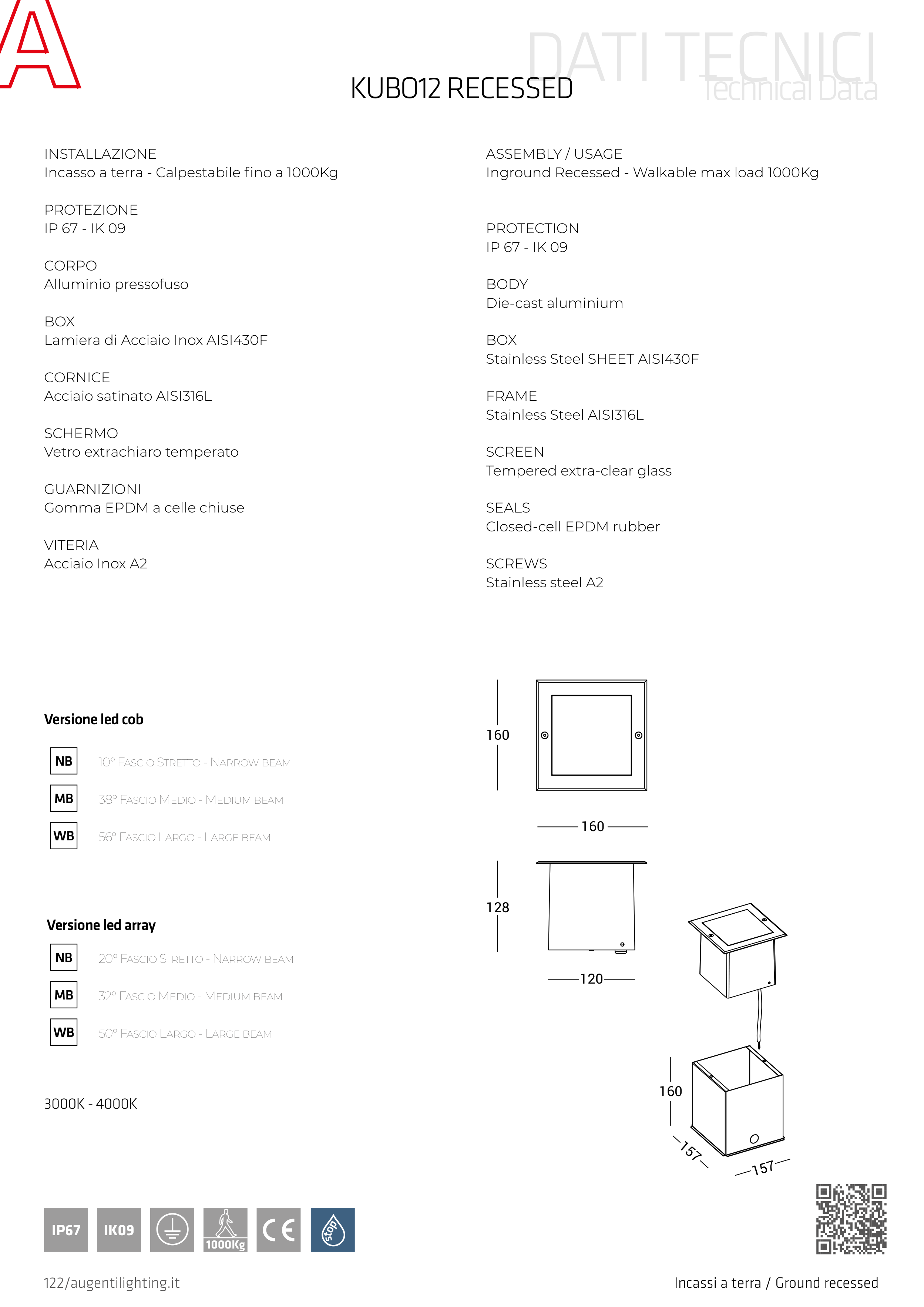 AUGENTI LIGHTING S.R.L. UNIPERSONALE Via Francesco Lana, 31 - 25065 Lumezzane BS ITALY - Phone 0039 030 7282524 - Fax 0039 030 7281879 - info@augentilighting.it - www.augentilighting.it