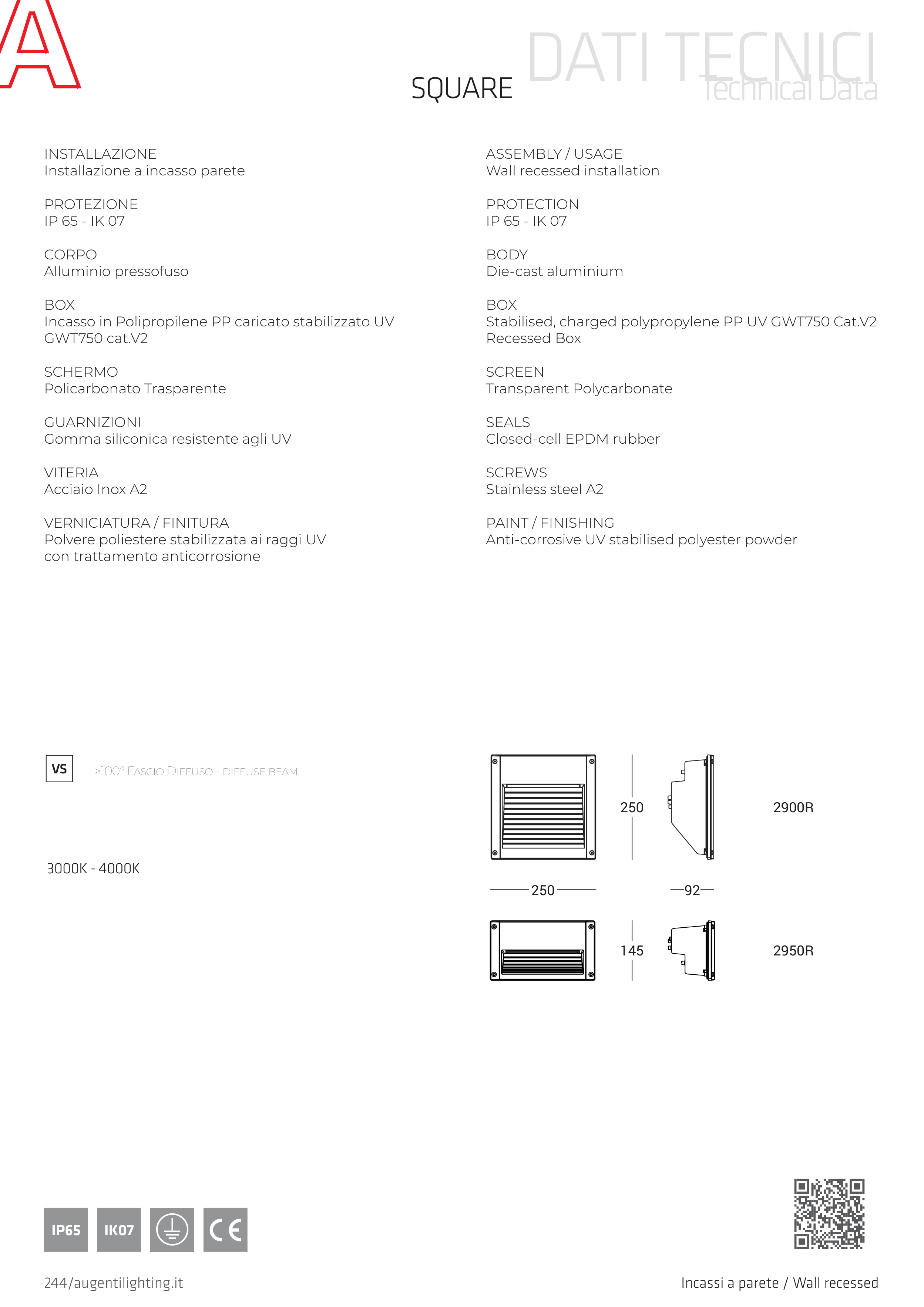 Incassato finestra quadrata-Driver incorporato / Wall recessed square window-Built-in driver