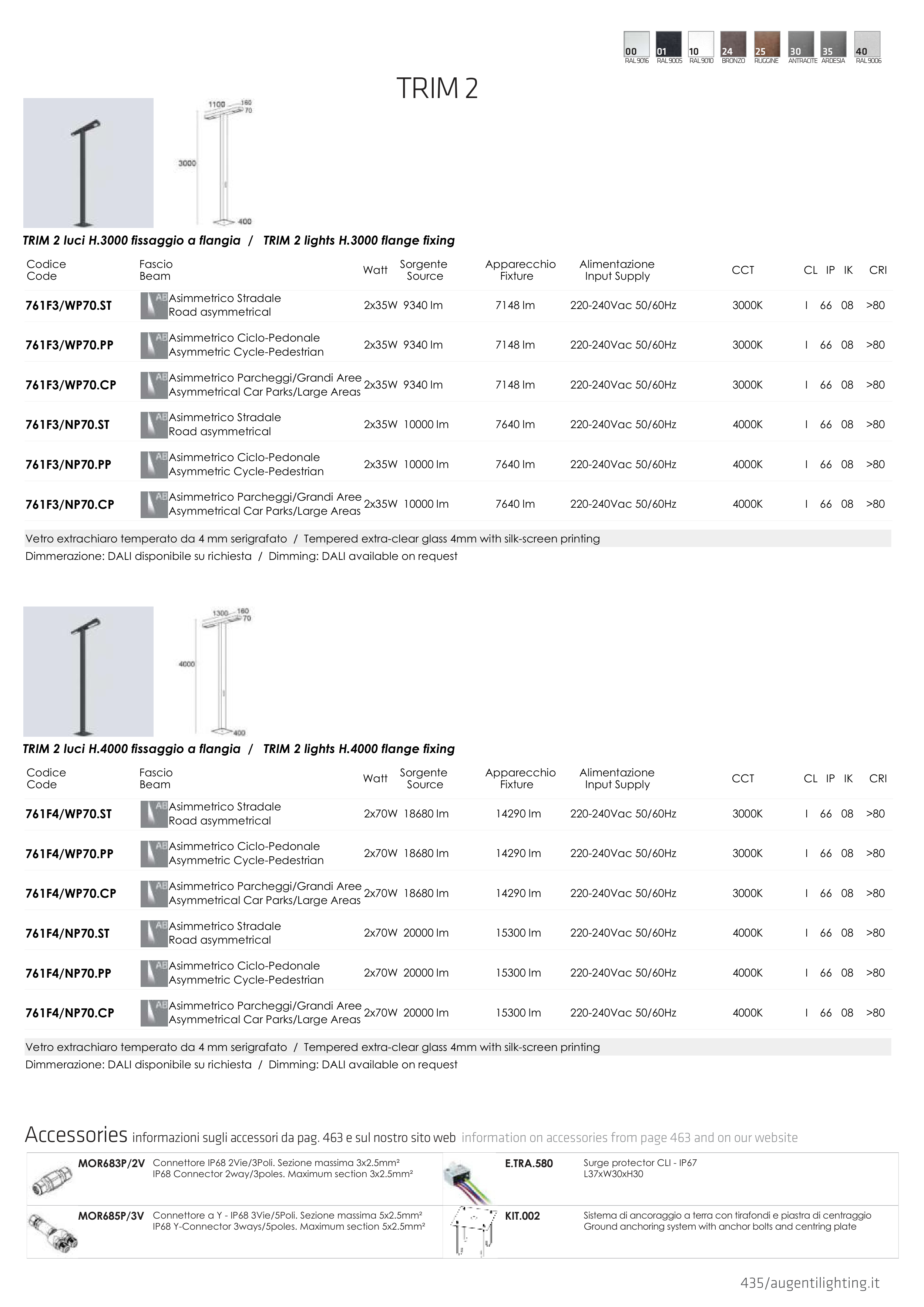 TRIM 2 luci H.3000 fissaggio a flangia / TRIM 2 lights H.3000 flange fixing
