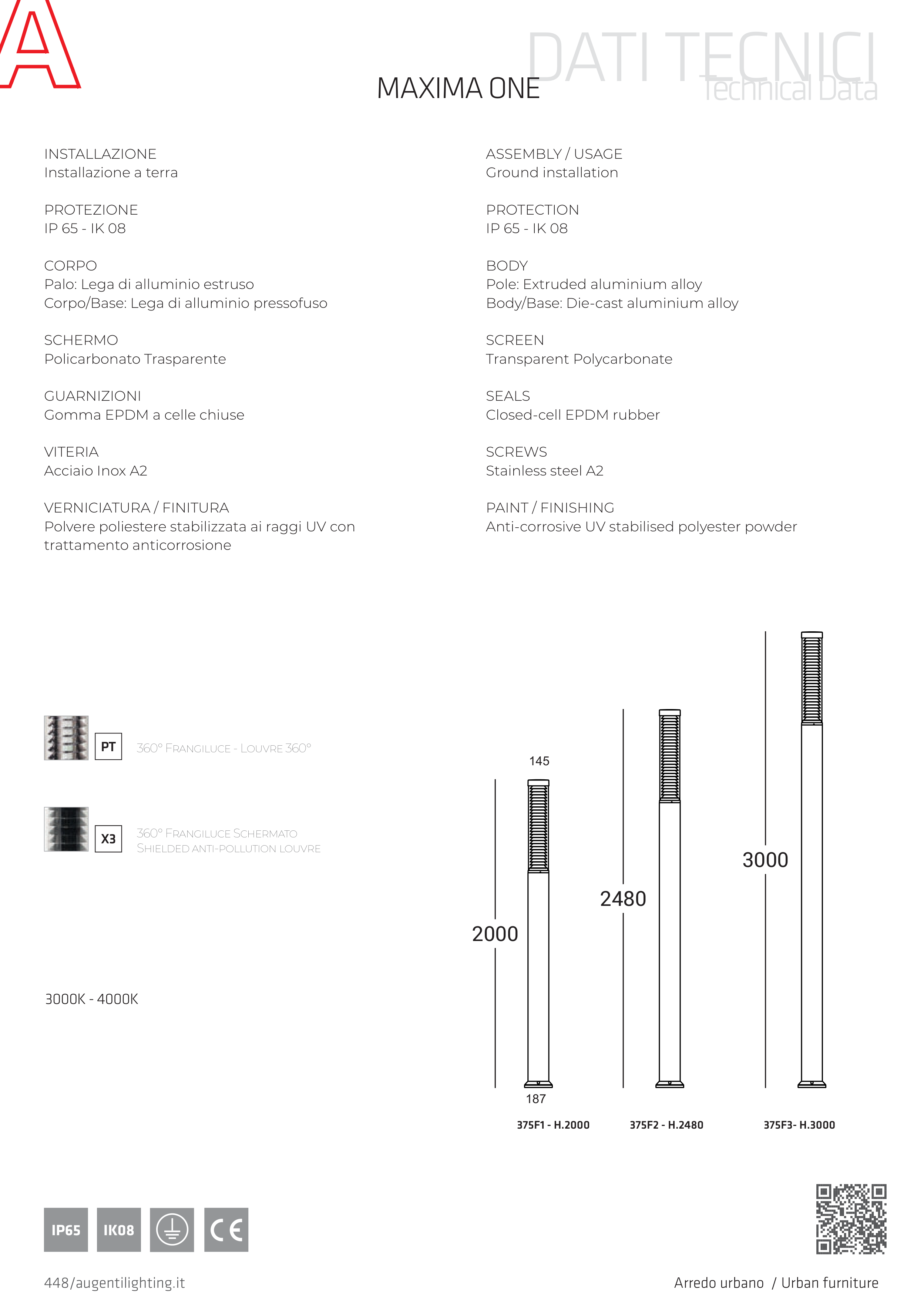 Palo H.2000 con frangiluce / Pole H.2000 with louvres