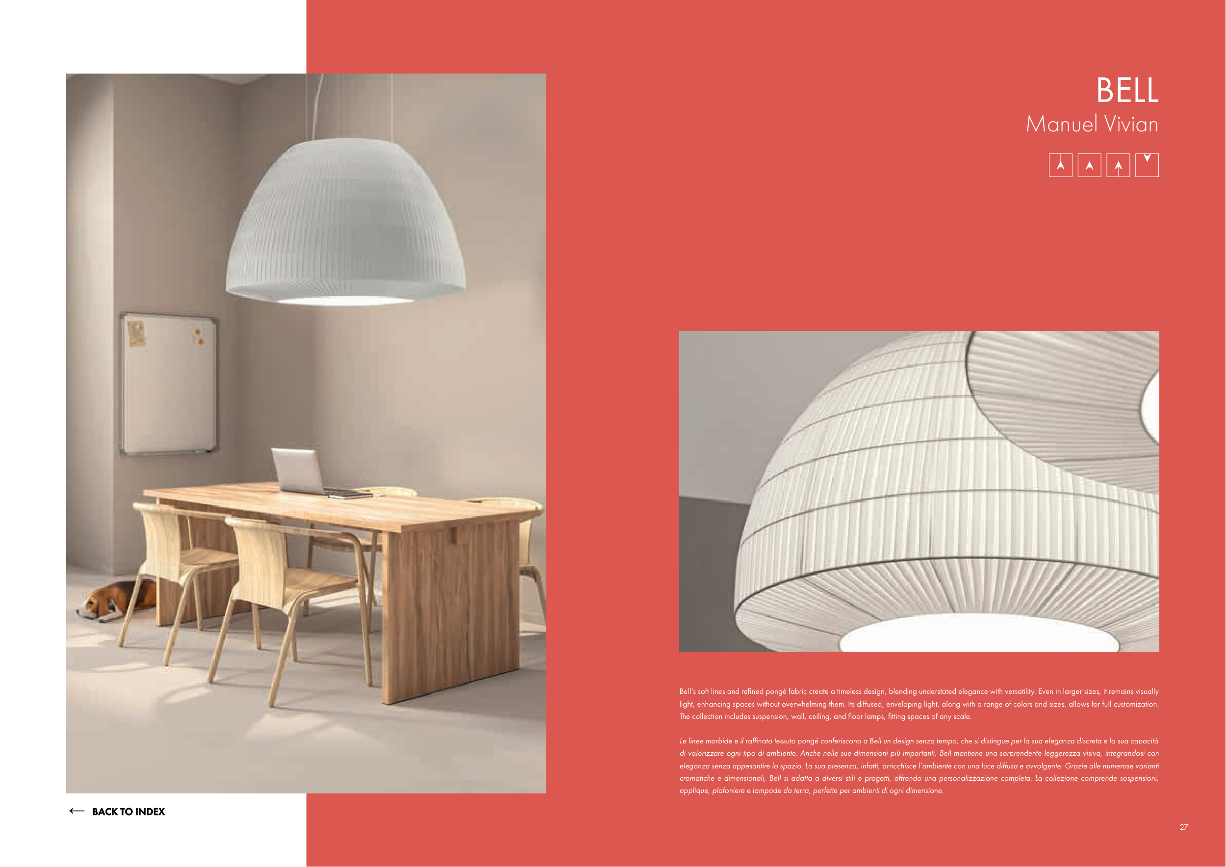 cromatiche e dimensionali, Bell si adatta a diversi stili e progetti, offrendo una personalizzazione completa. La collezione comprende sospensioni,