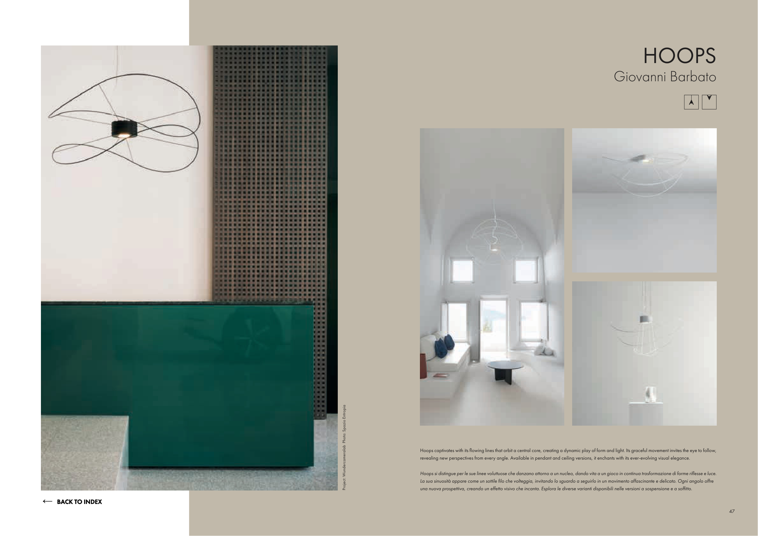 revealing new perspectives from every angle. Available in pendant and ceiling versions, it enchants with its ever-evolving visual elegance.