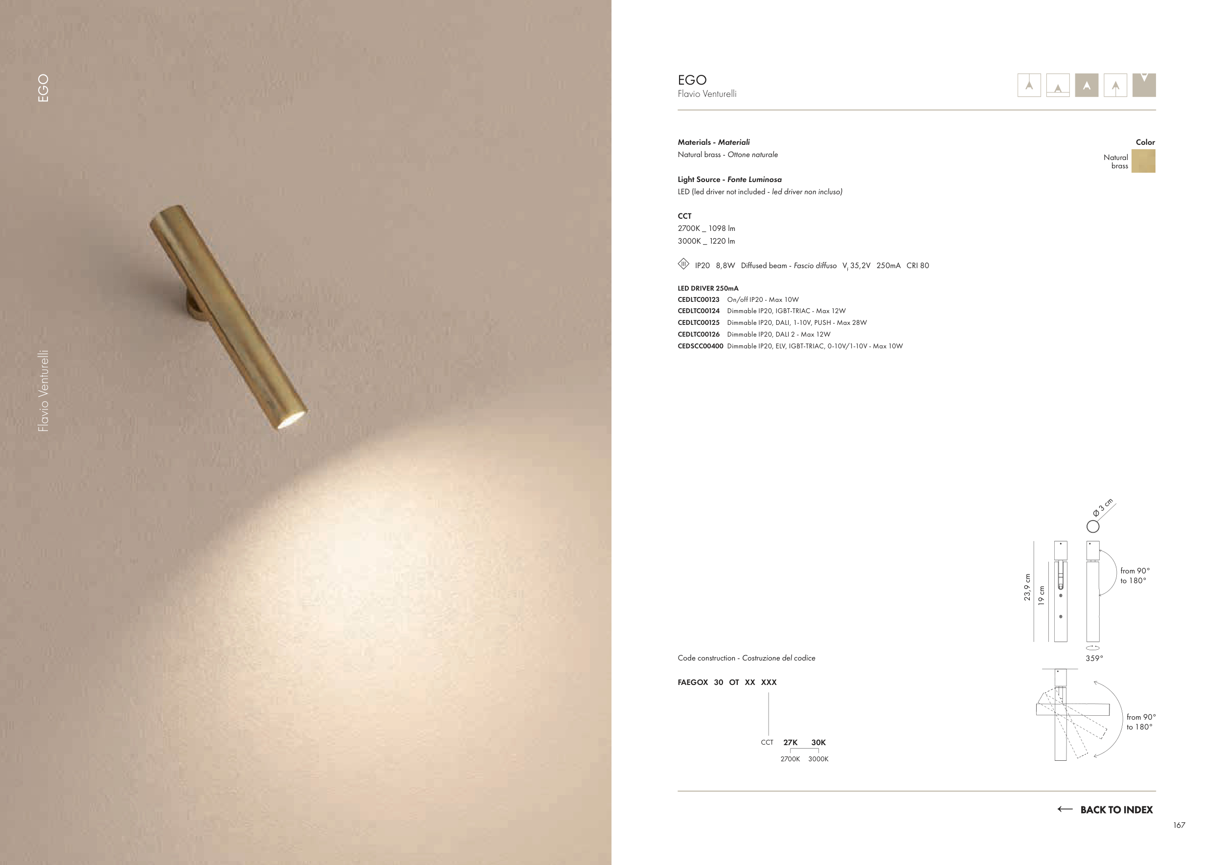 IP20 8,8W Diffused beam - Fascio diffuso Vf 35,2V 250mA CRI 80