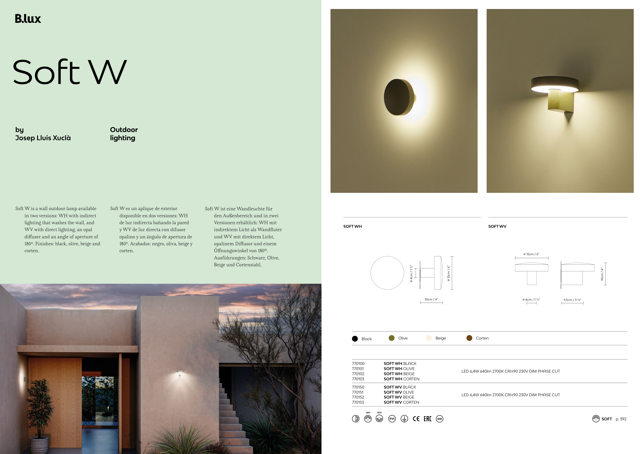 180º. Finishes: black, olive, beige and