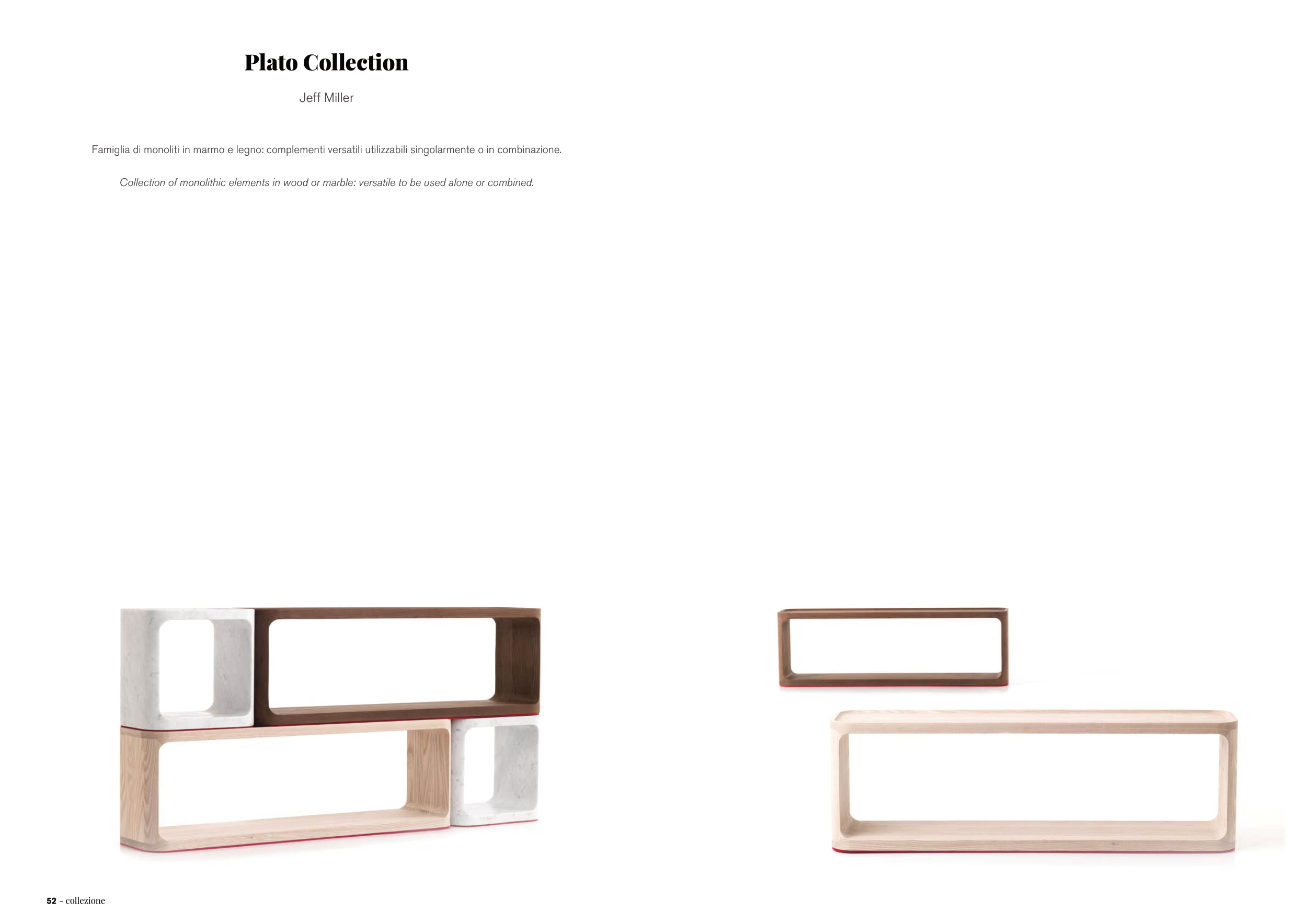 52 - collezione Famiglia di monoliti in marmo e legno: complementi versatili utilizzabili singolarmente o in combinazione. Collection of monolithic elements in wood or marble: versatile to be used alone or combined. Plato Collection Jeff Miller