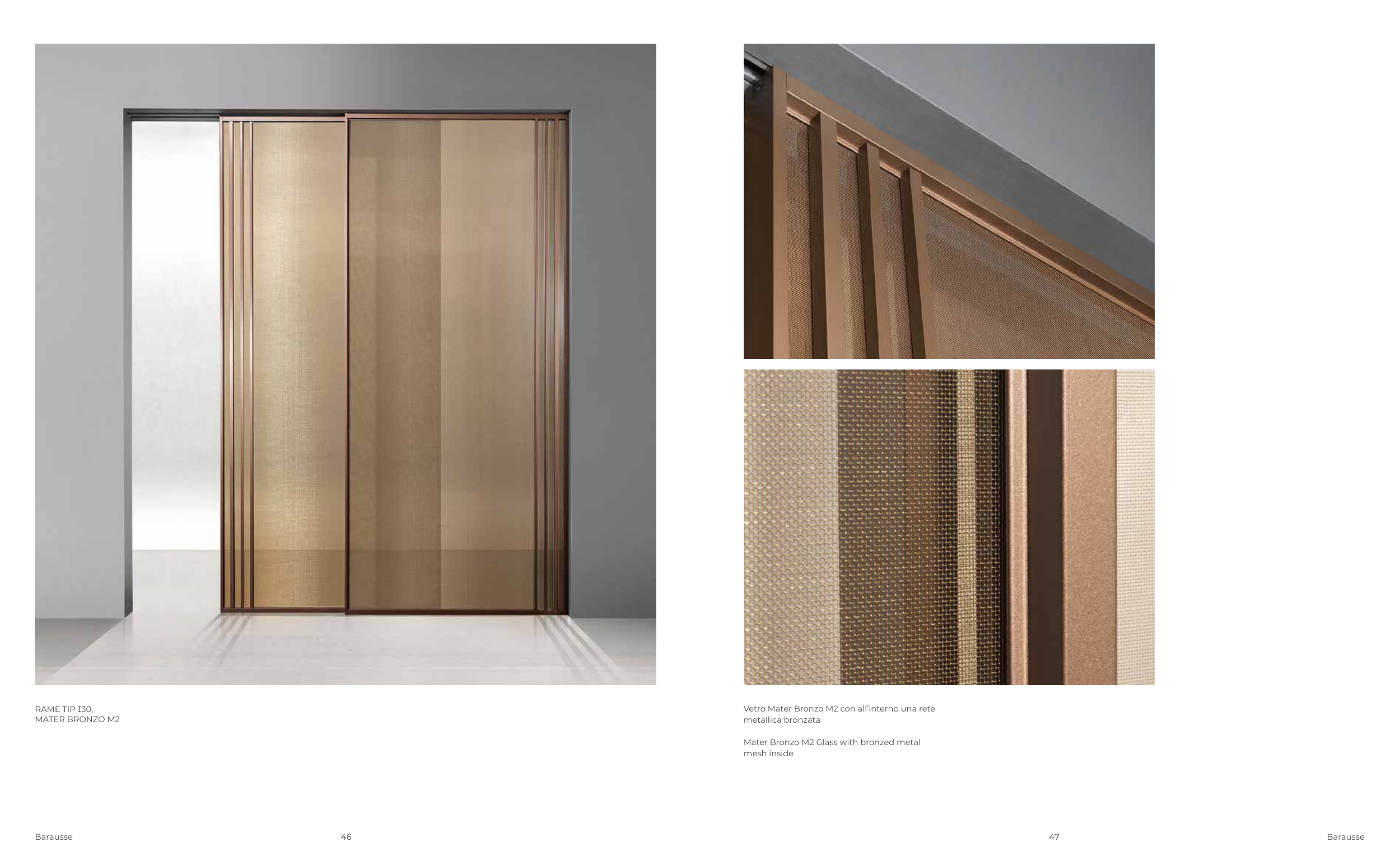 47 46 Barausse Barausse RAME TIP I30, MATER BRONZO M2 Vetro Mater Bronzo M2 con all’interno una rete metallica bronzata Mater Bronzo M2 Glass with bronzed metal mesh inside