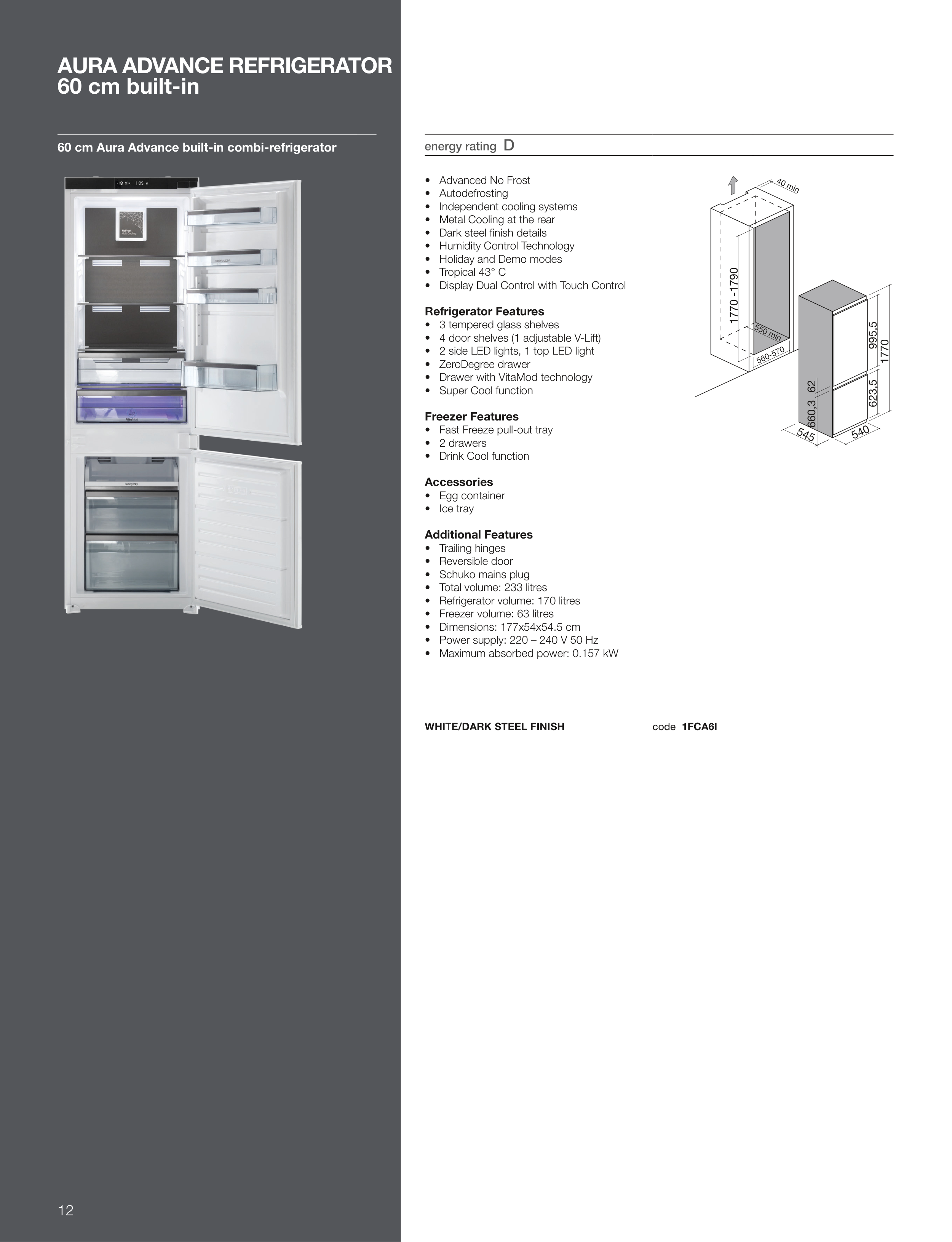 60 cm Aura Advance built-in combi-refrigerator