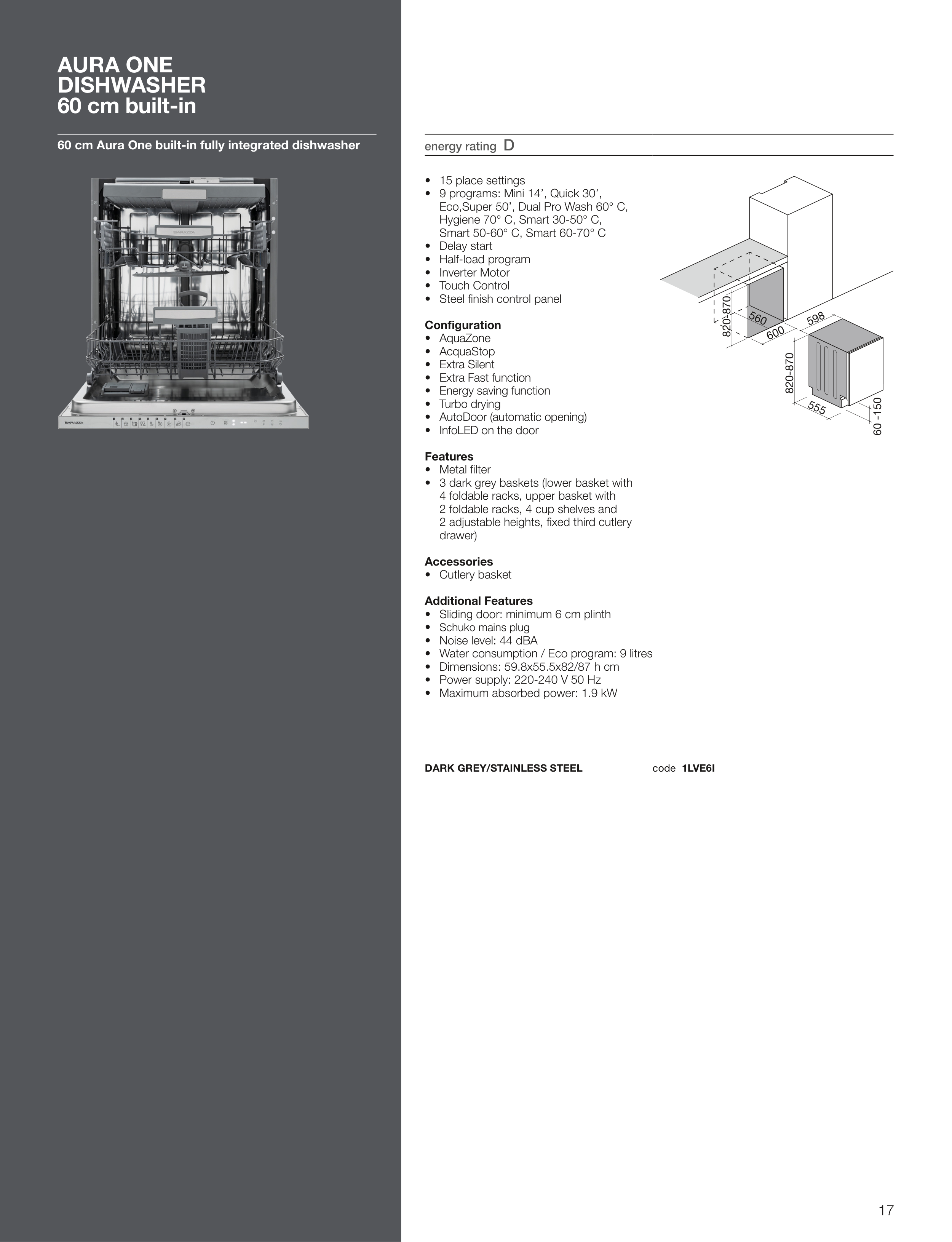 60 cm Aura One built-in fully integrated dishwasher