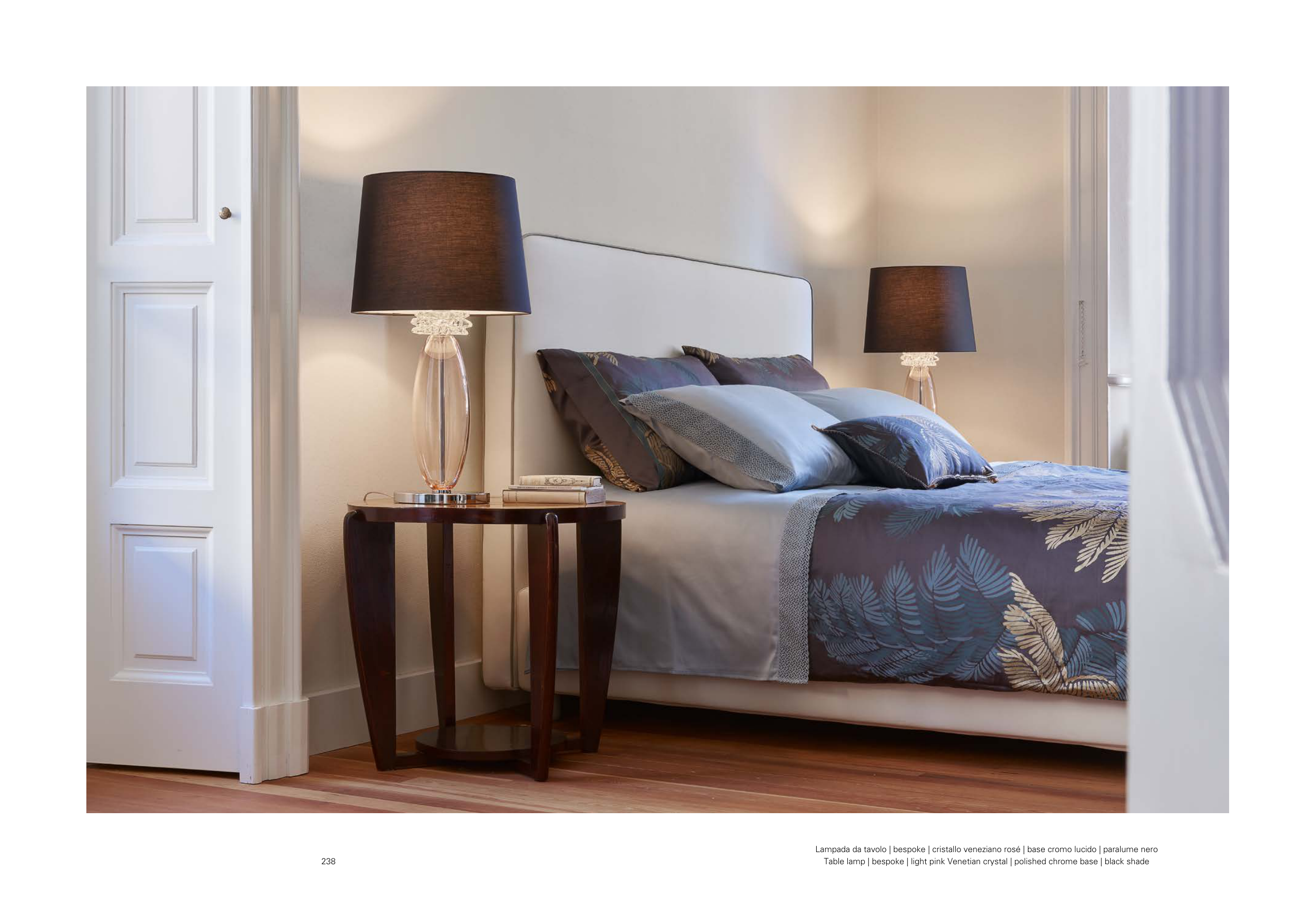 Lampada da tavolo | bespoke | cristallo veneziano rosé | base cromo lucido | paralume nero