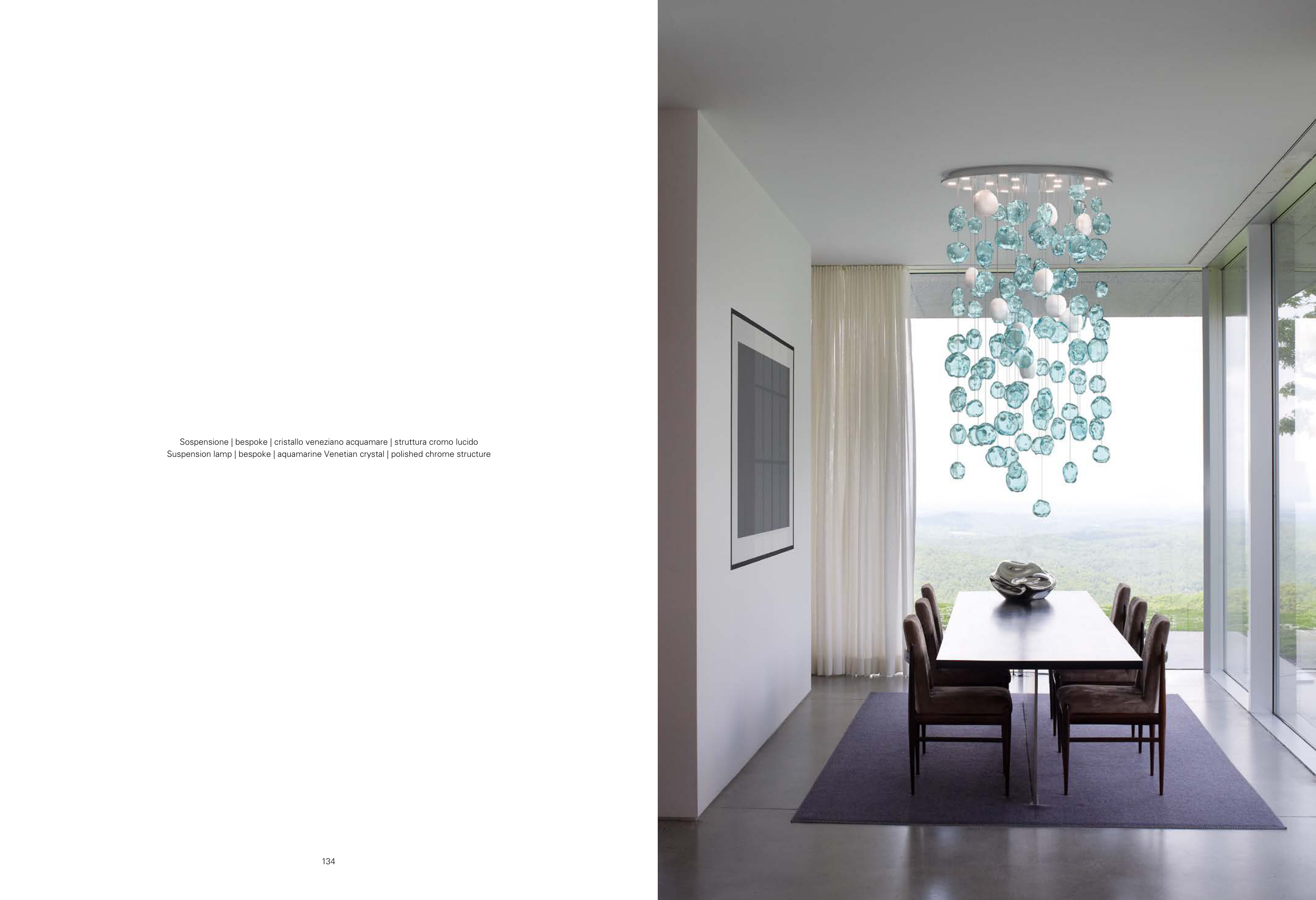 Suspension lamp | bespoke | aquamarine Venetian crystal | polished chrome structure
