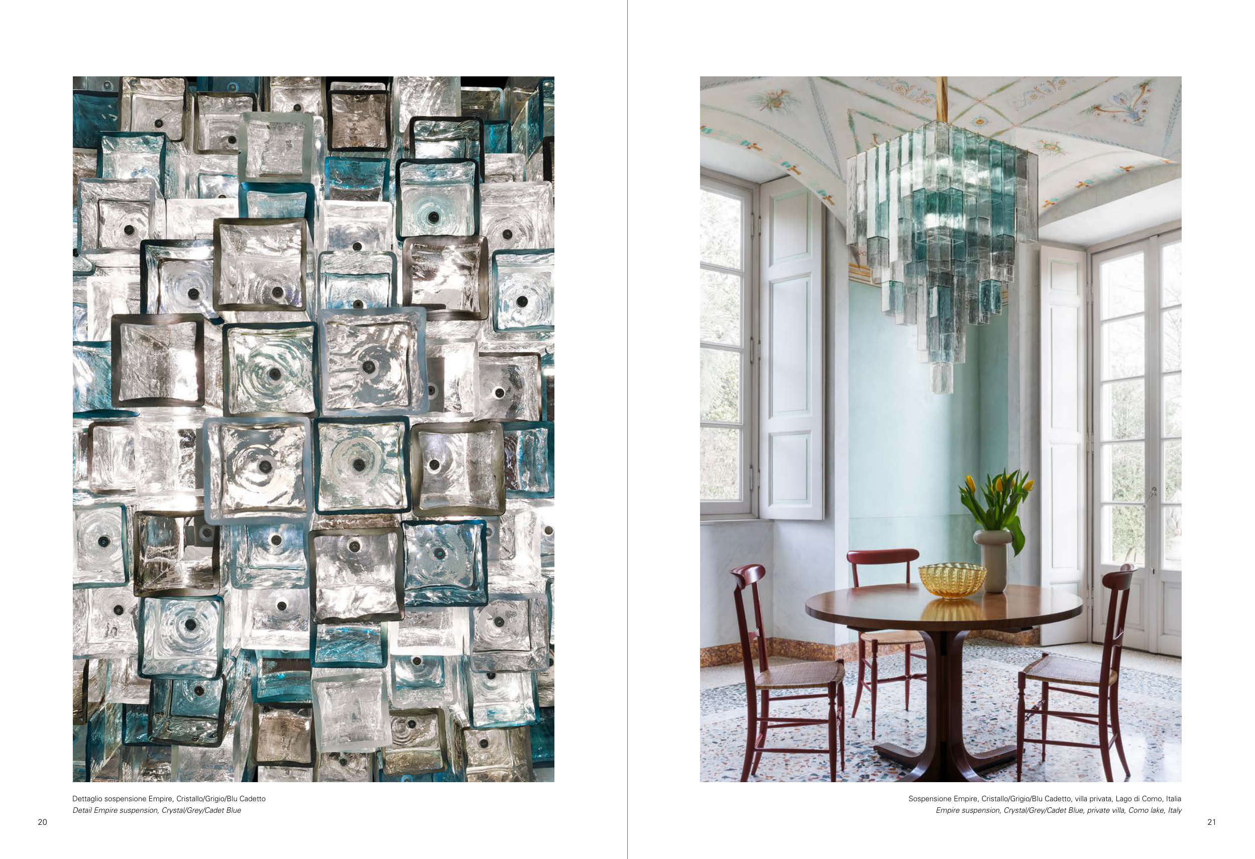 Empire suspension, Crystal/Grey/Cadet Blue, private villa, Como lake, Italy