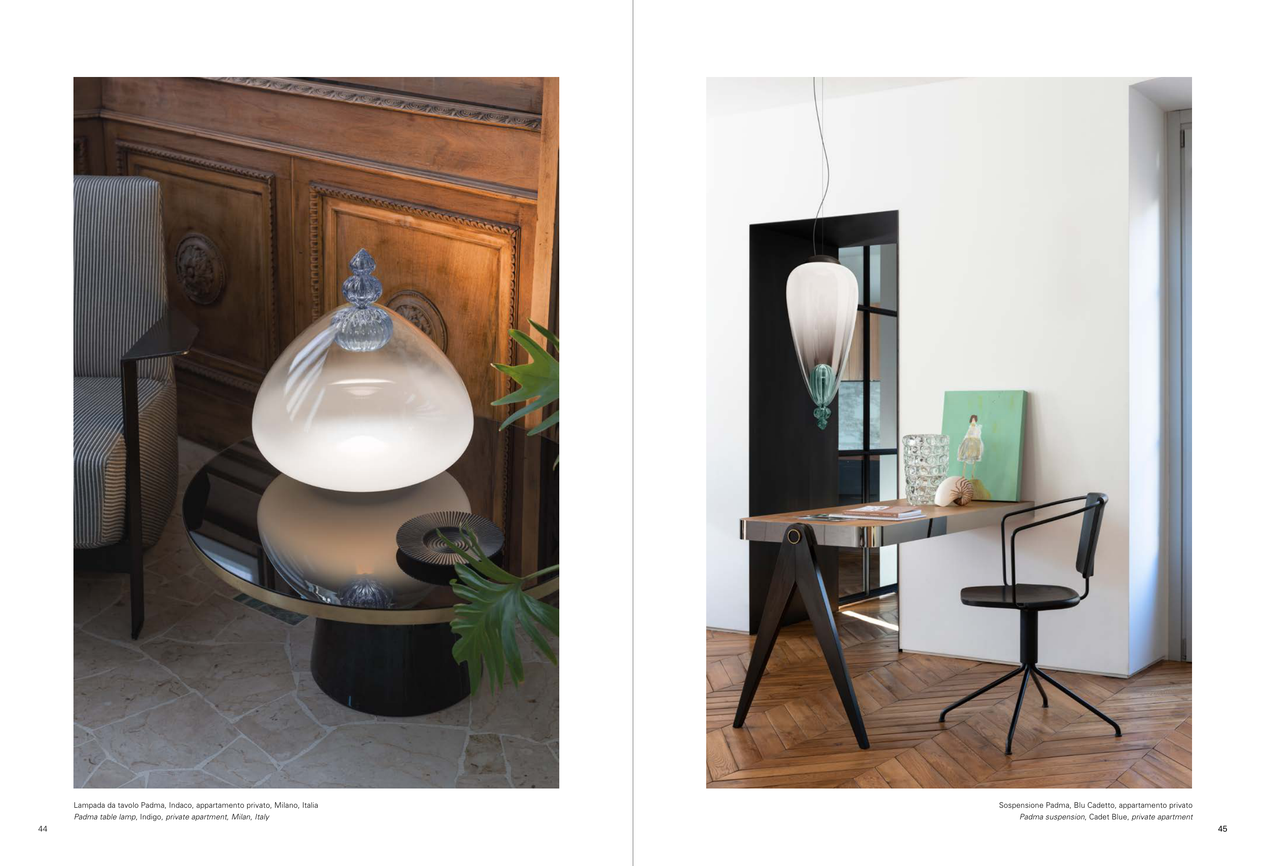 Padma table lamp, Indigo, private apartment, Milan, Italy