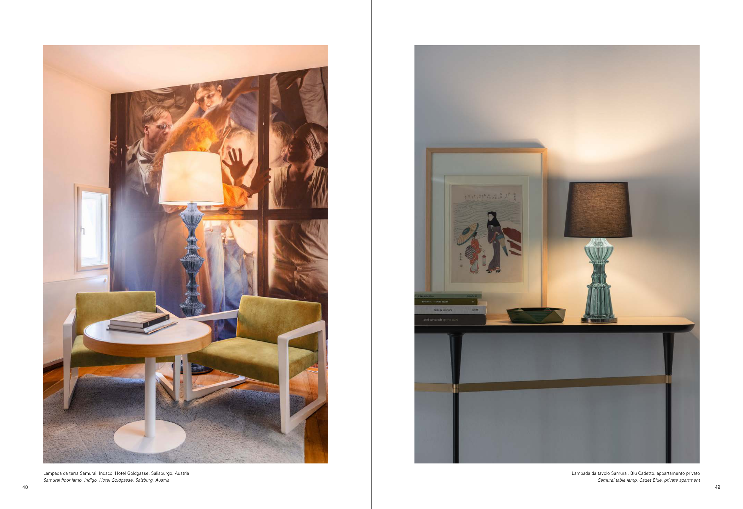 48 49 49 Lampada da tavolo Samurai, Blu Cadetto, appartamento privato Samurai table lamp, Cadet Blue, private apartment Lampada da terra Samurai, Indaco, Hotel Goldgasse, Salisburgo, Austria Samurai floor lamp, Indigo, Hotel Goldgasse, Salzburg, Austria