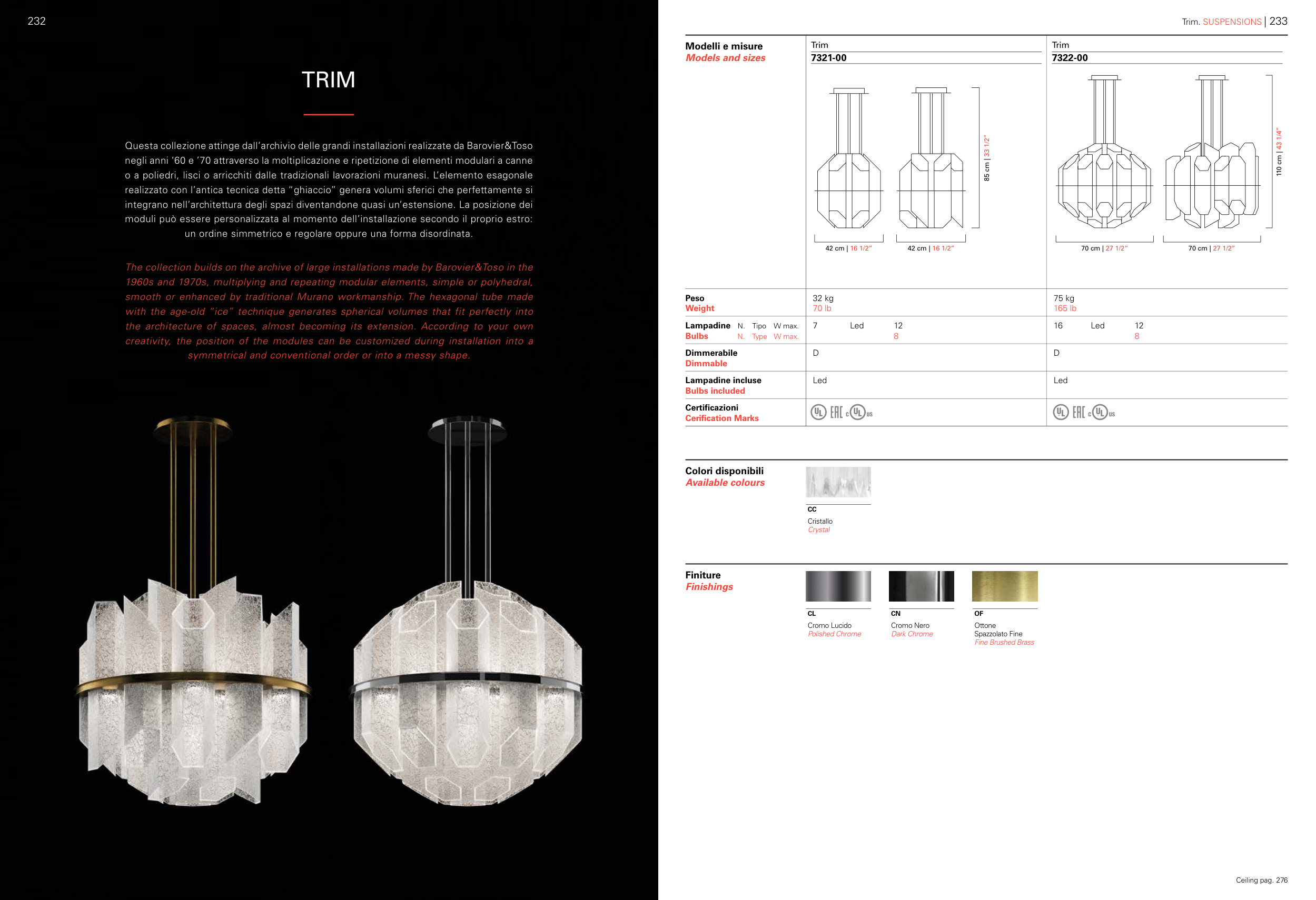Questa collezione attinge dall’archivio delle grandi installazioni realizzate da Barovier&Toso