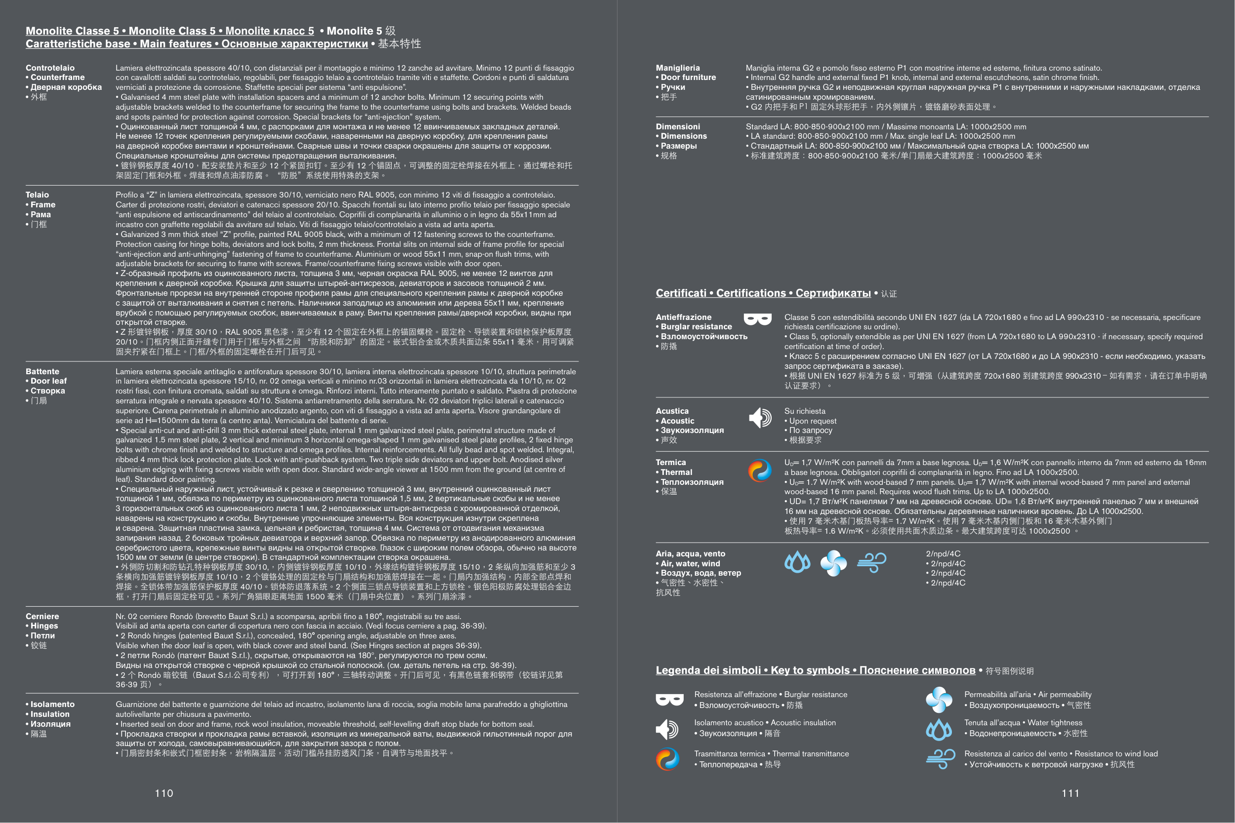 • 根据 UNI EN 1627 标准为 5 级,可增强(从建筑跨度 720x1680 到建筑跨度 990x2310 – 如有需求,请在订单中明确