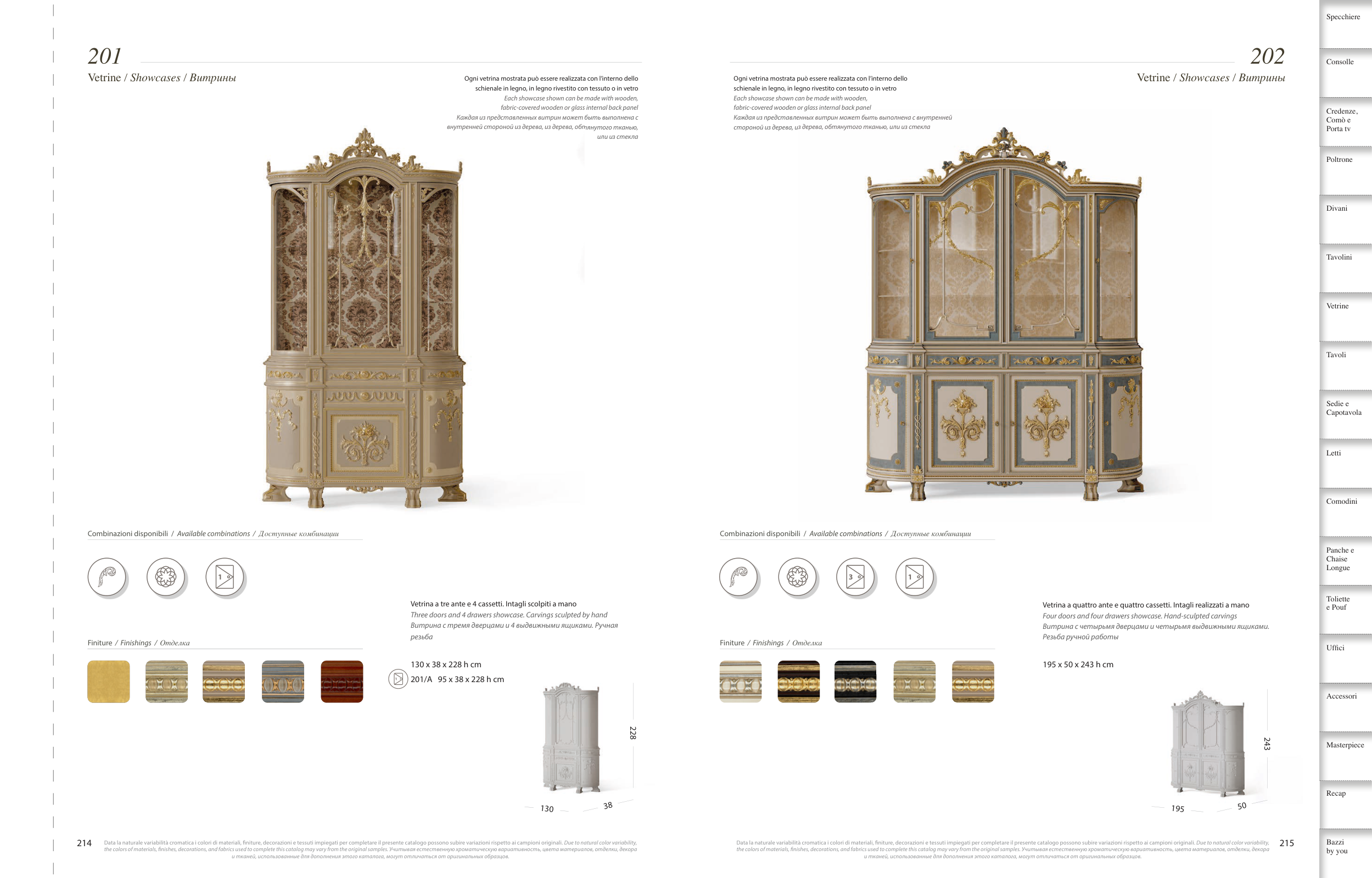 the colors of materials, fnishes, decorations, and fabrics used to complete this catalog may vary from the original samples. Учитывая естественную хроматическую вариативность, цвета материалов, отделки, декора