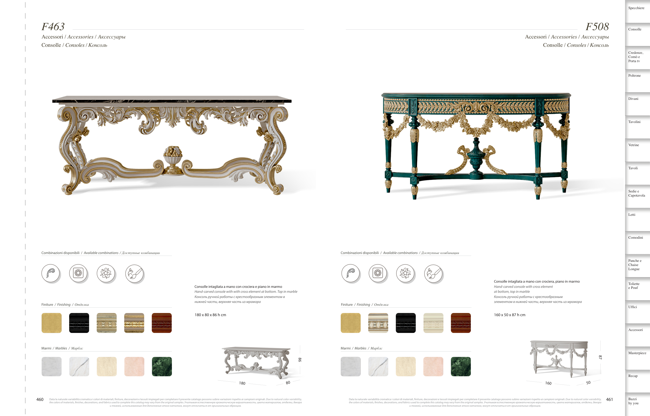 the colors of materials, fnishes, decorations, and fabrics used to complete this catalog may vary from the original samples. Учитывая естественную хроматическую вариативность, цвета материалов, отделки, декора