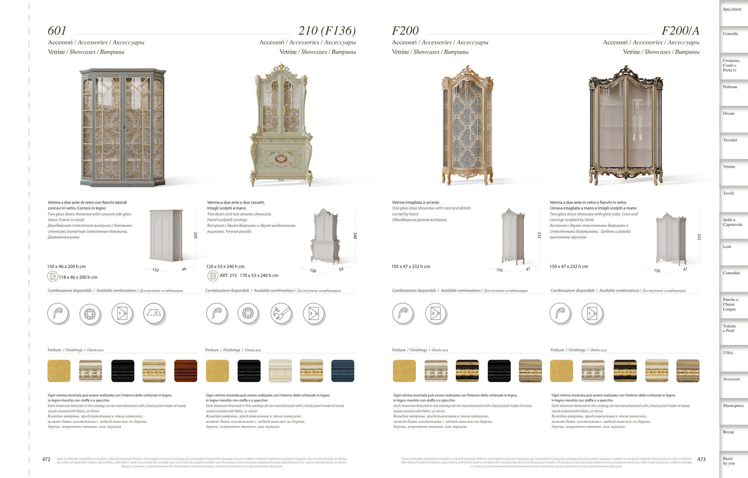 the colors of materials, fnishes, decorations, and fabrics used to complete this catalog may vary from the original samples. Учитывая естественную хроматическую вариативность, цвета материалов, отделки, декора