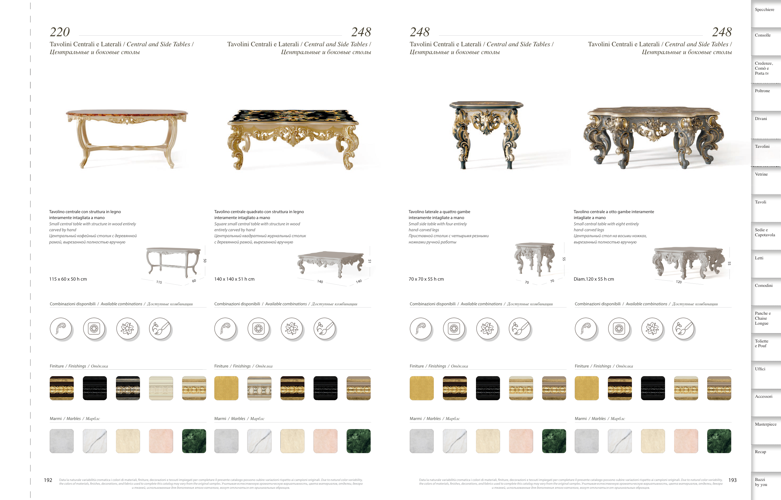 the colors of materials, fnishes, decorations, and fabrics used to complete this catalog may vary from the original samples. Учитывая естественную хроматическую вариативность, цвета материалов, отделки, декора