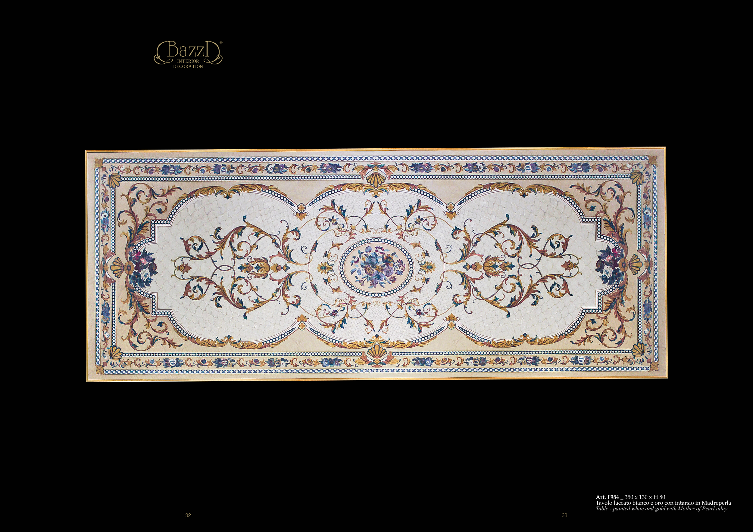 Tavolo laccato bianco e oro con intarsio in Madreperla