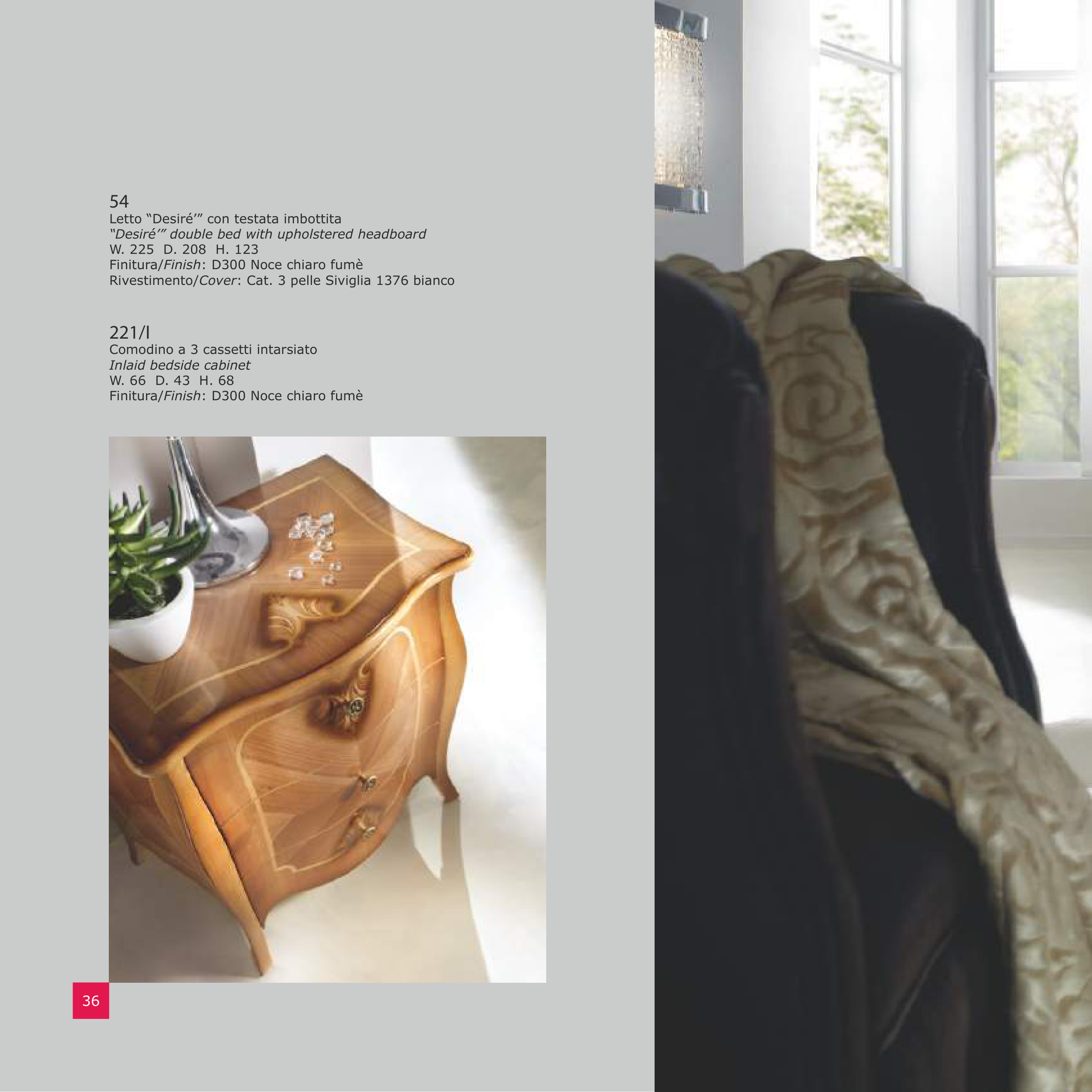 “Desiré’” double bed with upholstered headboard
