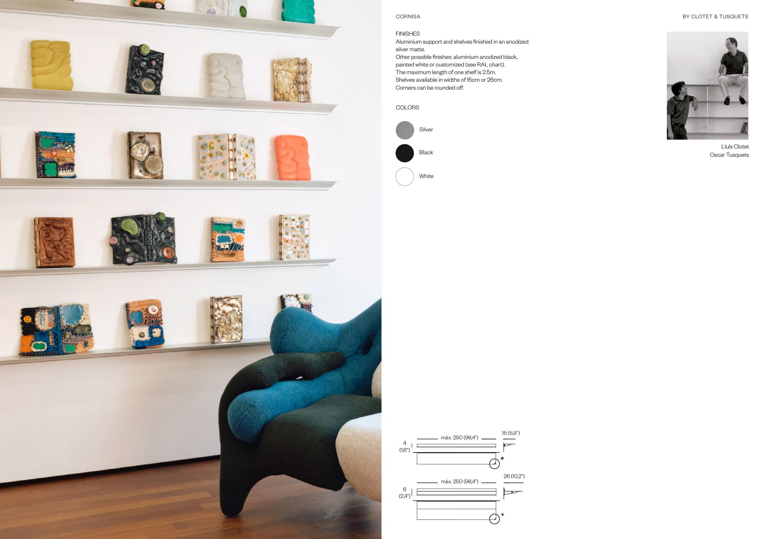 Shelves available in widths of 15cm or 26cm.