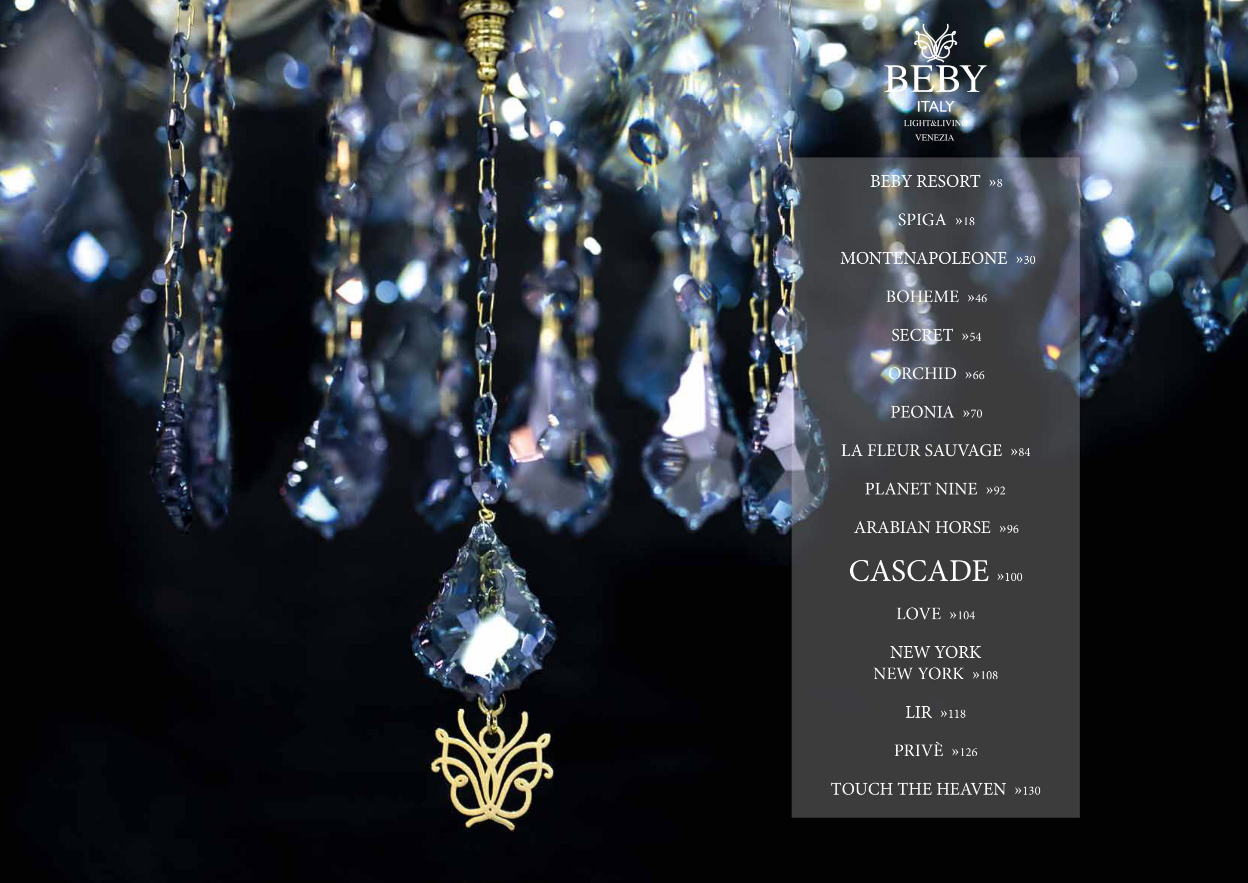 BEBY RESORT »8 SPIGA »18 MONTENAPOLEONE »30 BOHEME »46 SECRET »54 ORCHID »66 PEONIA »70 LA FLEUR SAUVAGE »84 PLANET NINE »92 ARABIAN HORSE »96 CASCADE »100 LOVE »104 NEW YORK NEW YORK »108 LIR »118 PRIVÈ »126 TOUCH THE HEAVEN »130