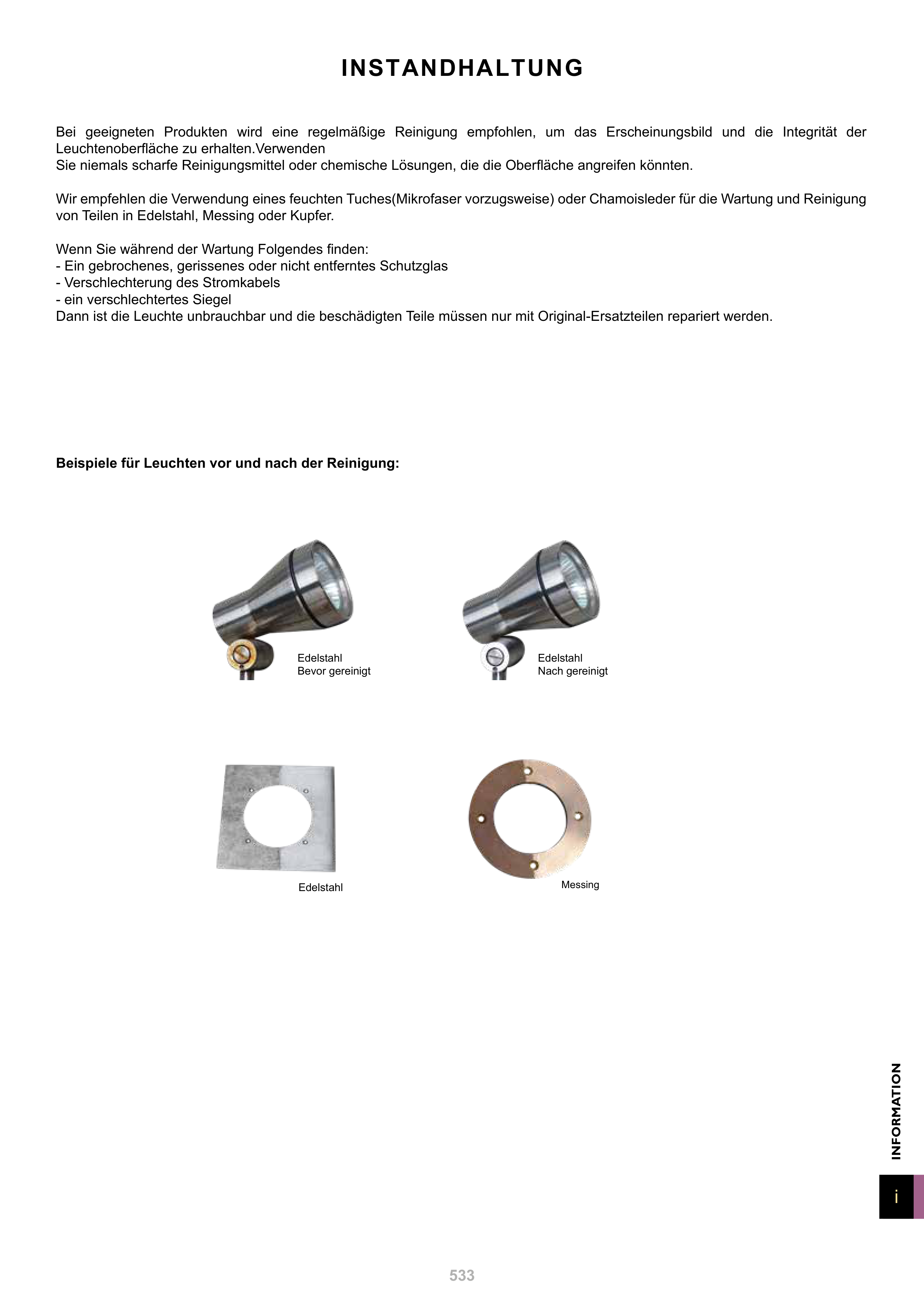 Bei geeigneten Produkten wird eine regelmäßige Reinigung empfohlen, um das Erscheinungsbild und die Integrität der