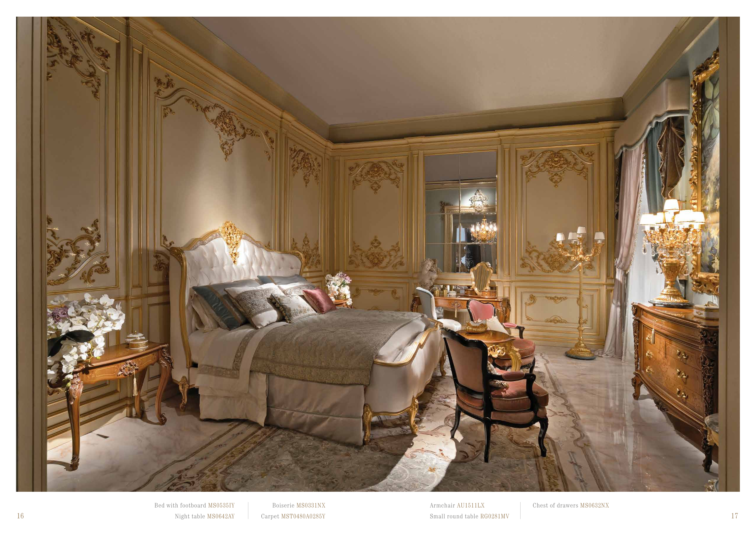 16 17 Night table MS0642AY Bed with footboard MS0535IY Boiserie MS0331NX Carpet MST0480A0285Y Armchair AU1511LX Small round table RG0281MV Chest of drawers MS0632NX