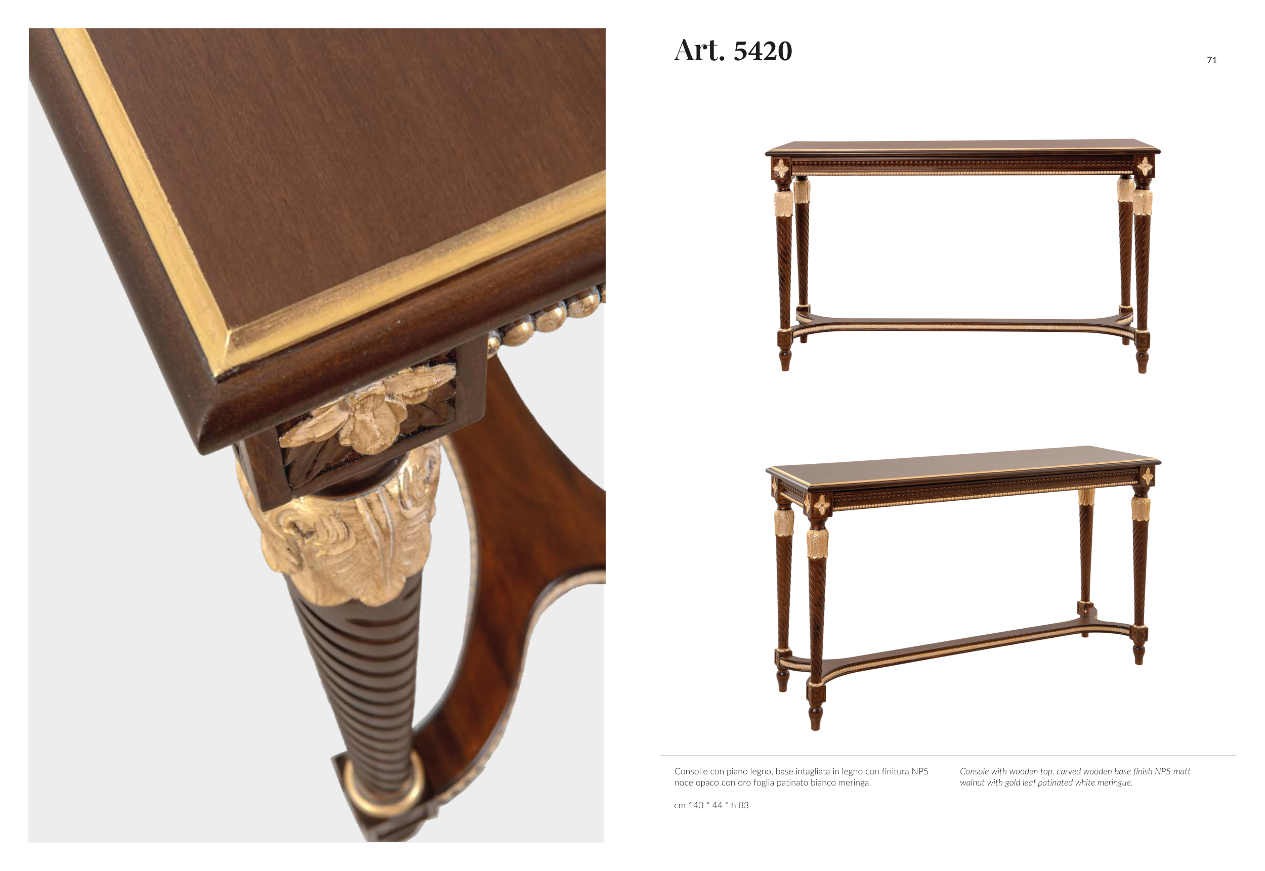 Console with wooden top, carved wooden base finish NP5 matt