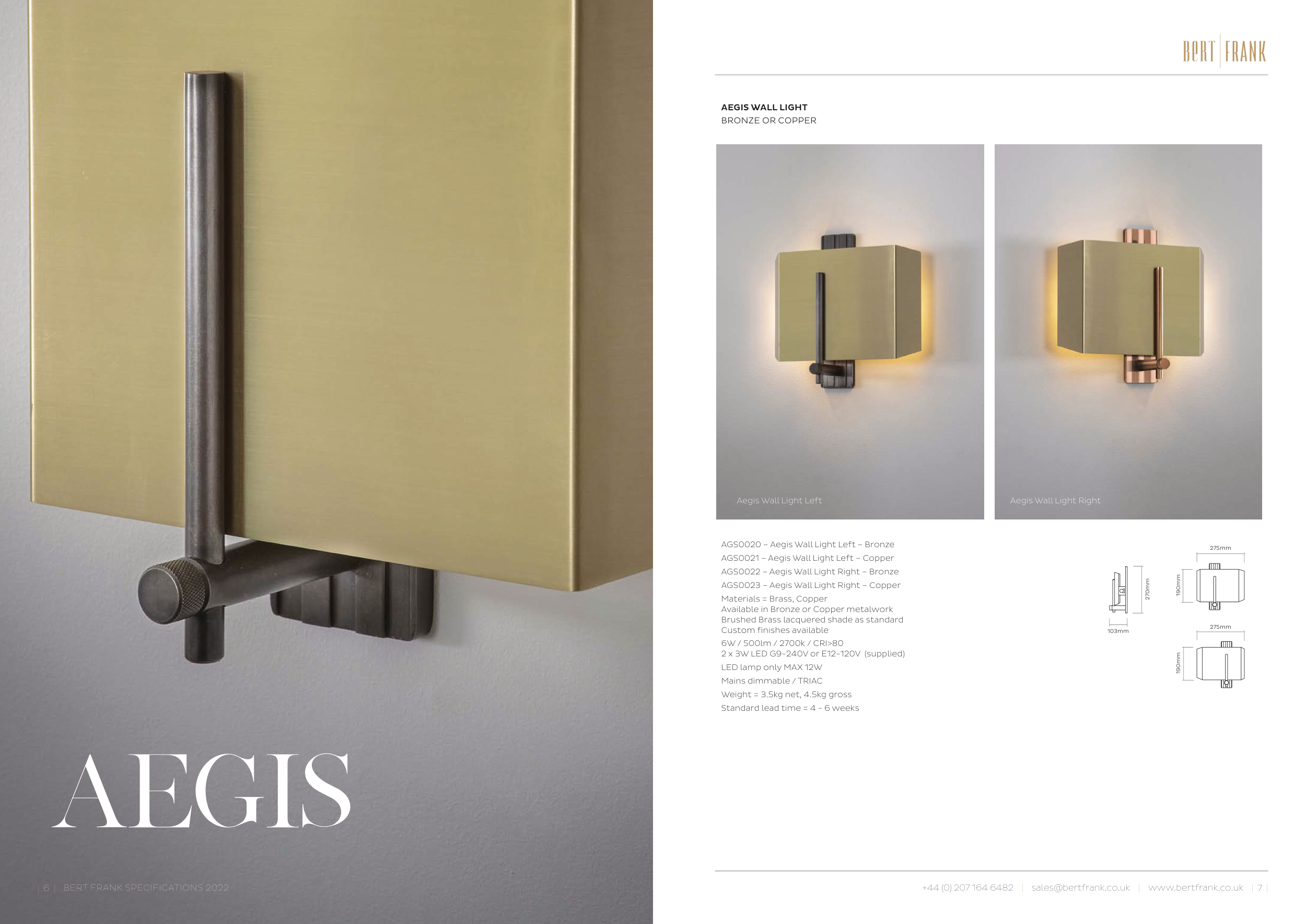 AGS0021 – Aegis Wall Light Left – Copper