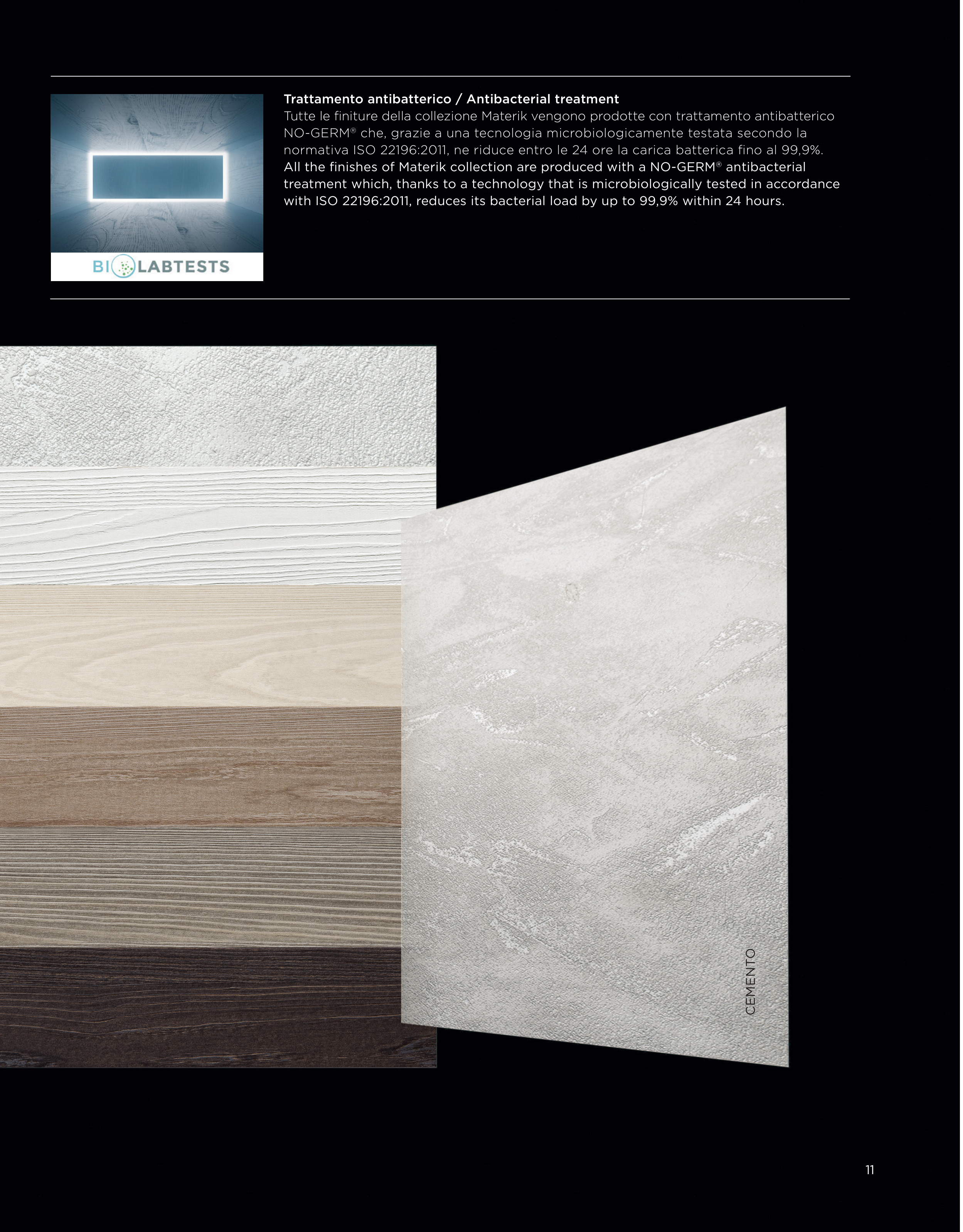 All the finishes of Materik collection are produced with a NO-GERM® antibacterial
