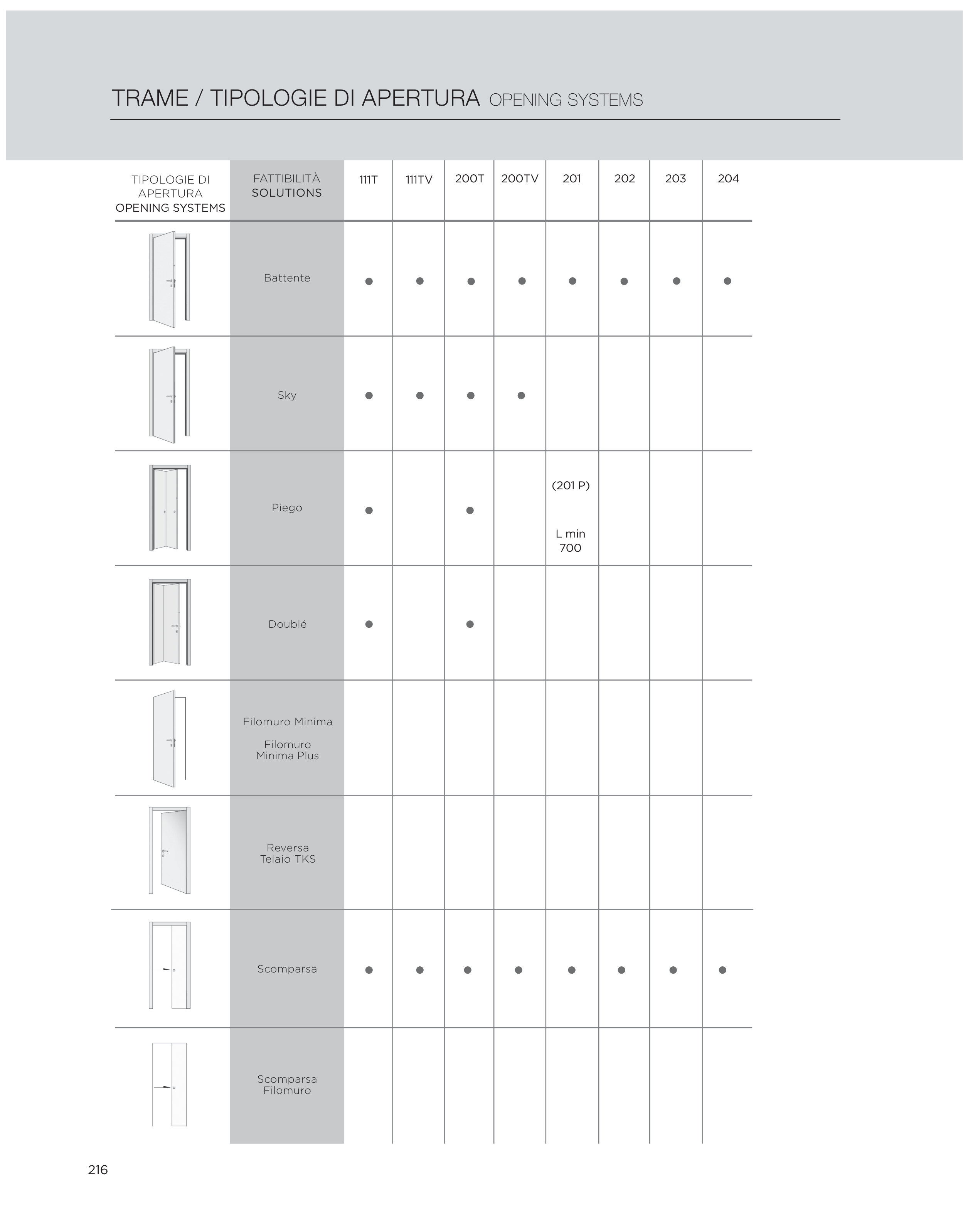 TRAME / TIPOLOGIE DI APERTURA OPENING SYSTEMS
