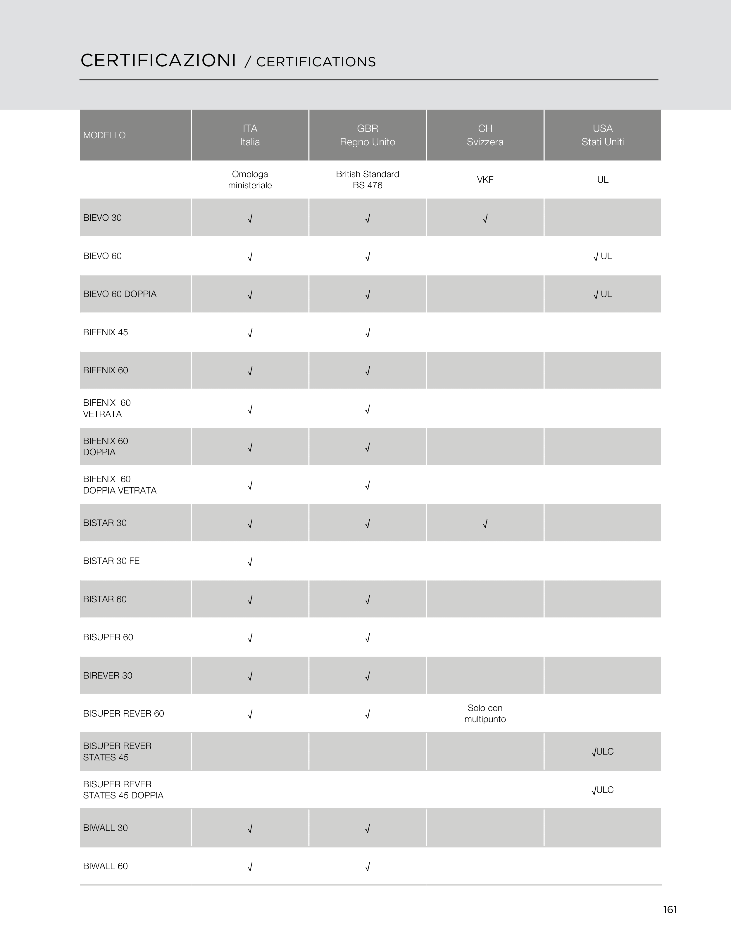 CERTIFICAZIONI / CERTIFICATIONS