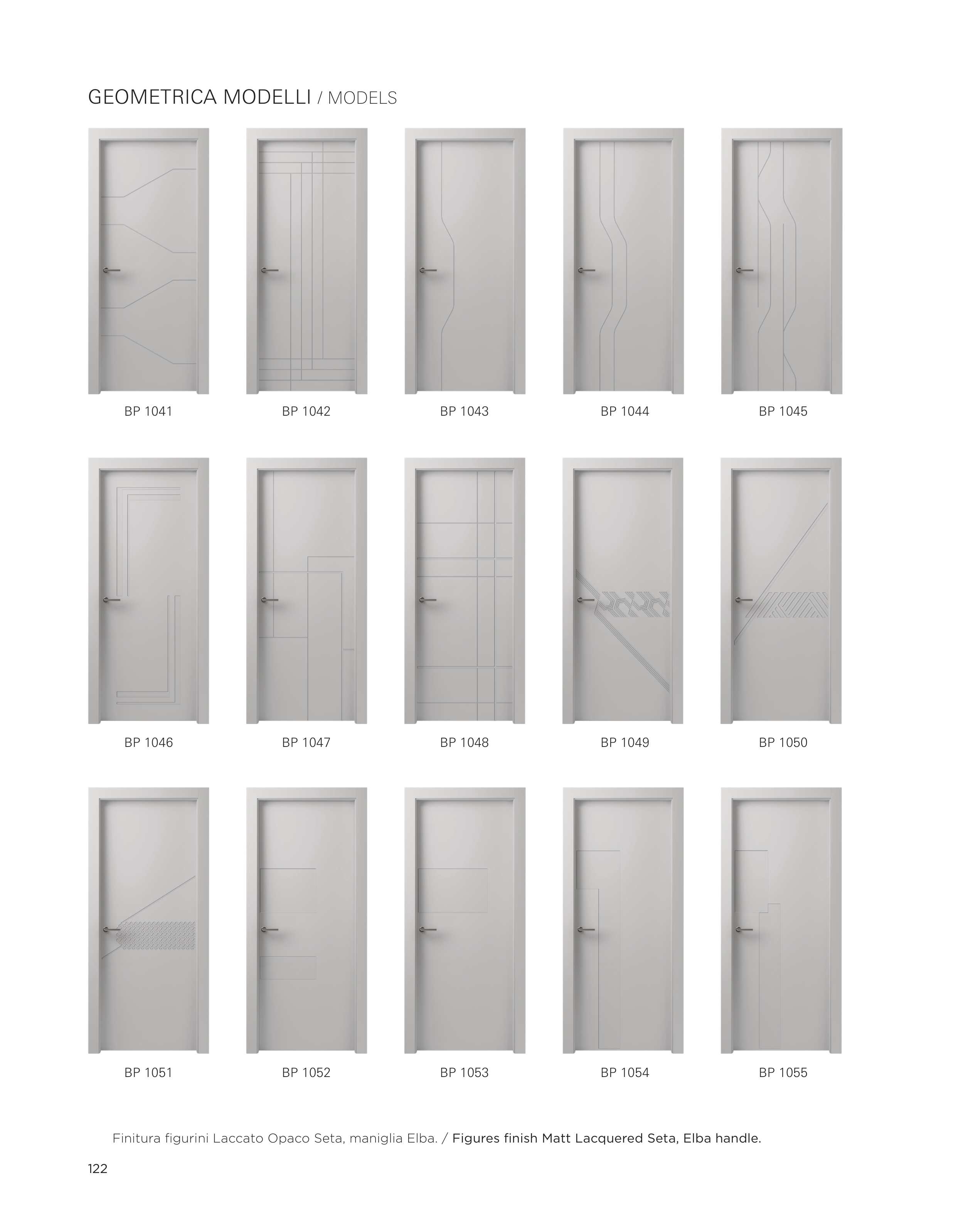 122 GEOMETRICA MODELLI / MODELS Finitura figurini Laccato Opaco Seta, maniglia Elba. / Figures finish Matt Lacquered Seta, Elba handle. BP 1041 BP 1046 BP 1051 BP 1042 BP 1047 BP 1052 BP 1043 BP 1048 BP 1053 BP 1044 BP 1049 BP 1054 BP 1045 BP 1050 BP 1055