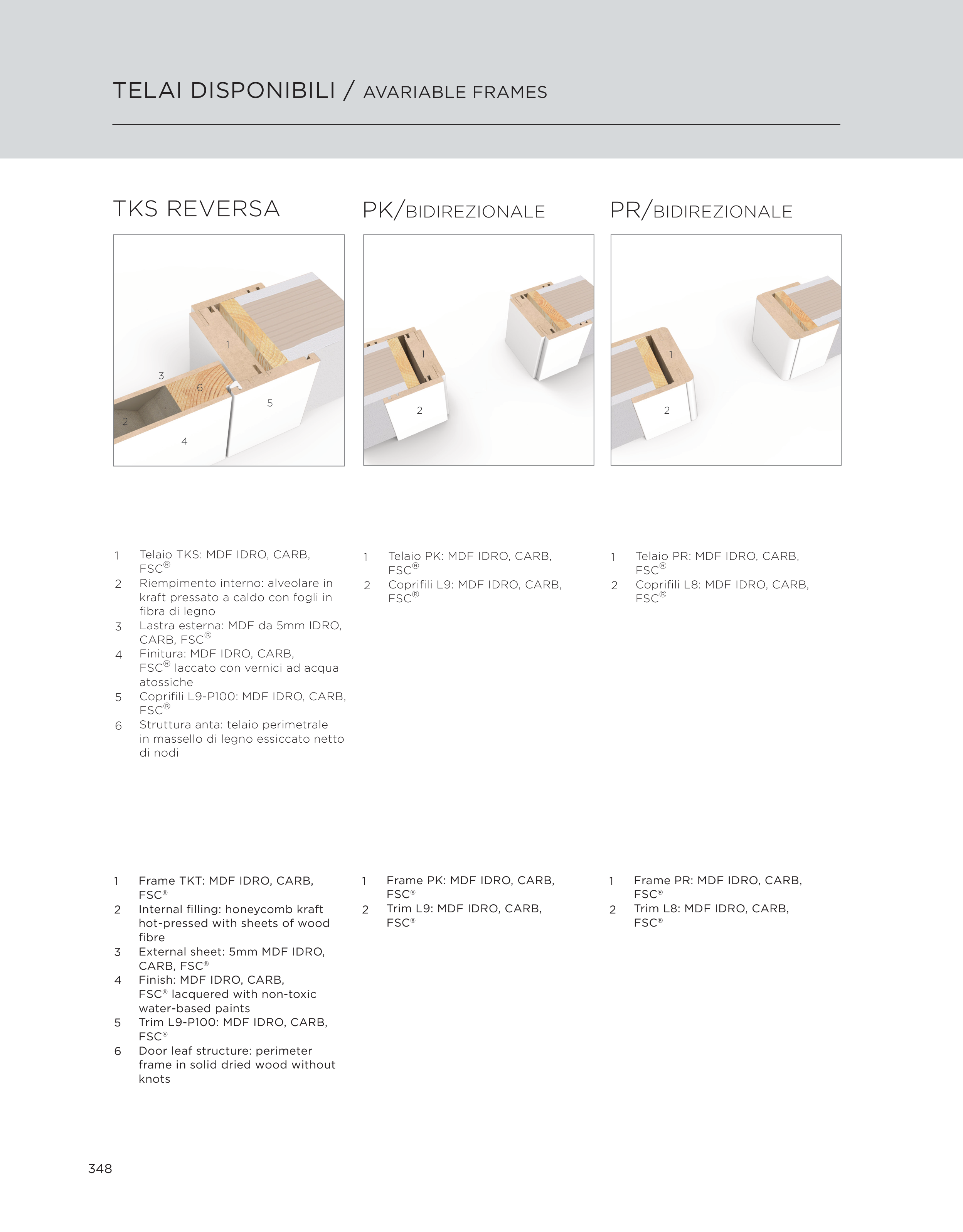TELAI DISPONIBILI / AVARIABLE FRAMES
