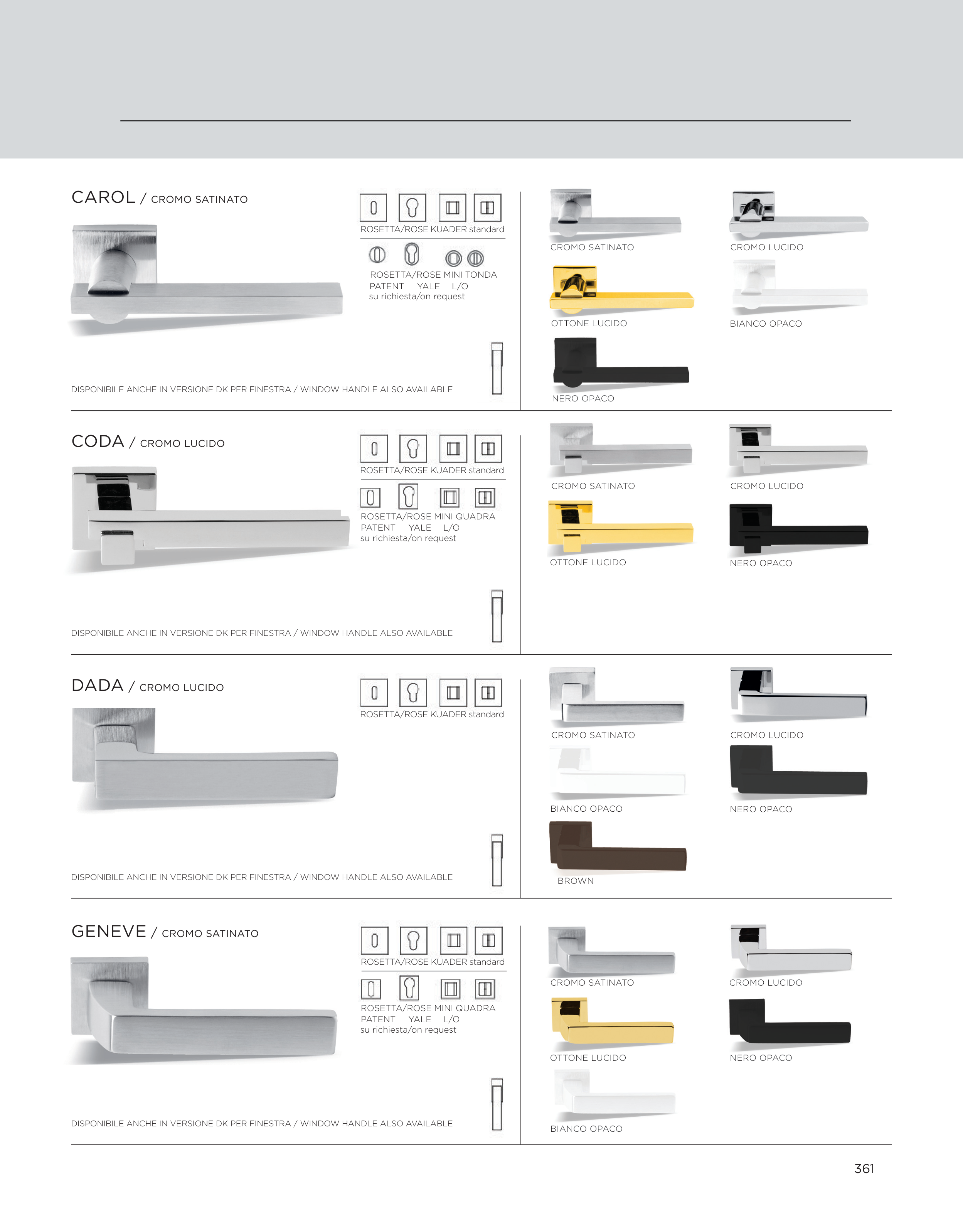 DISPONIBILE ANCHE IN VERSIONE DK PER FINESTRA / WINDOW HANDLE ALSO AVAILABLE