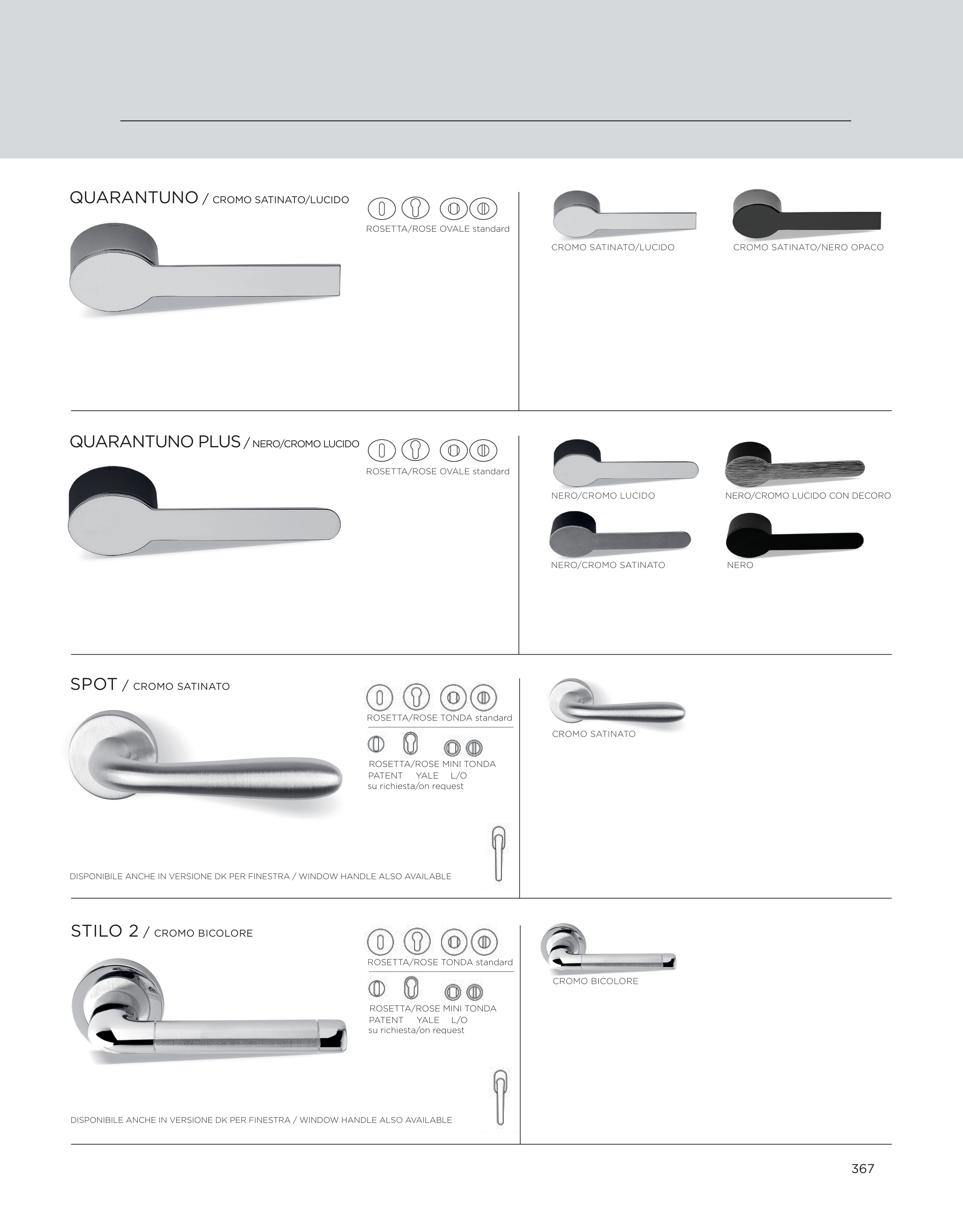 DISPONIBILE ANCHE IN VERSIONE DK PER FINESTRA / WINDOW HANDLE ALSO AVAILABLE