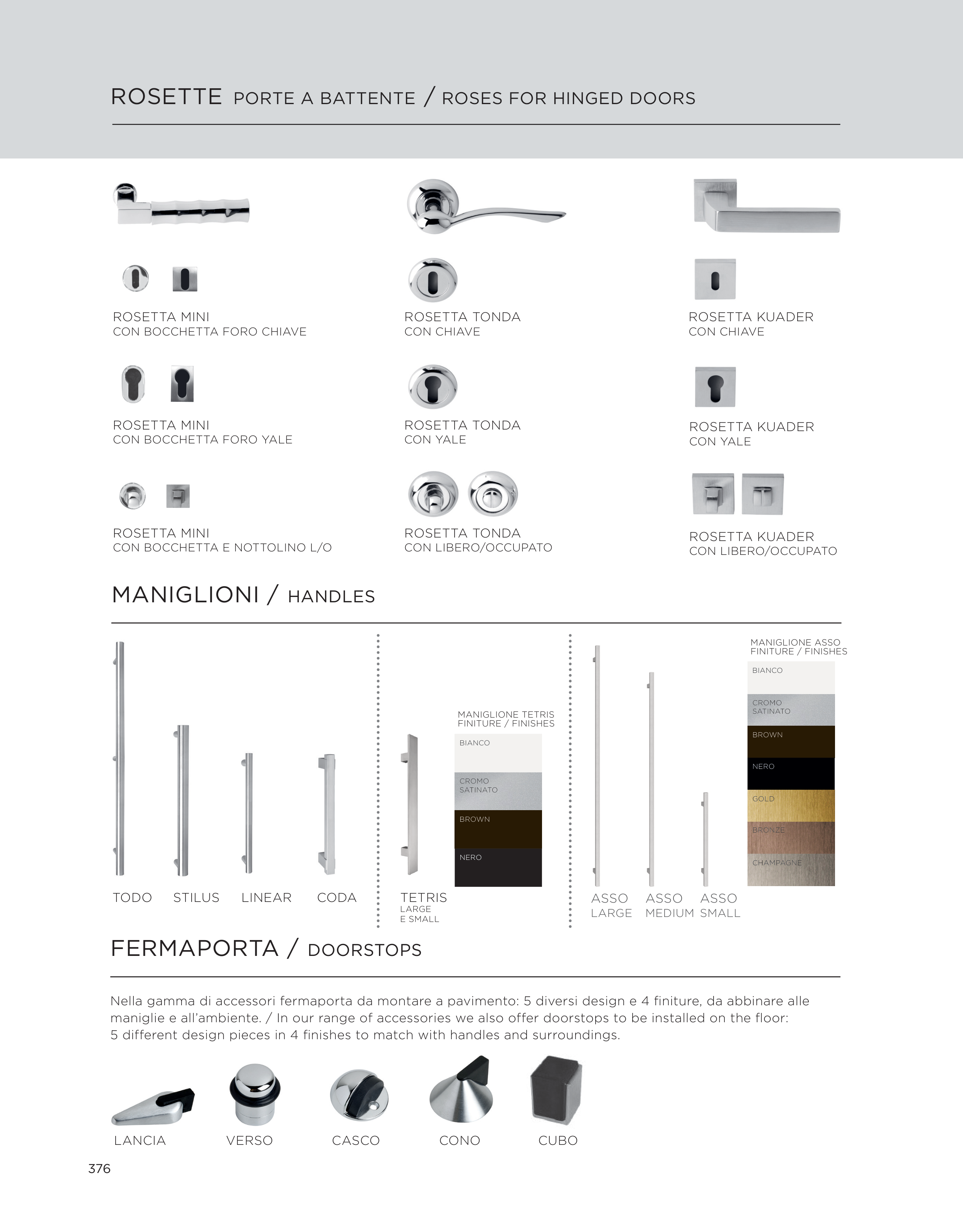 maniglie e all’ambiente. / In our range of accessories we also offer doorstops to be installed on the floor: