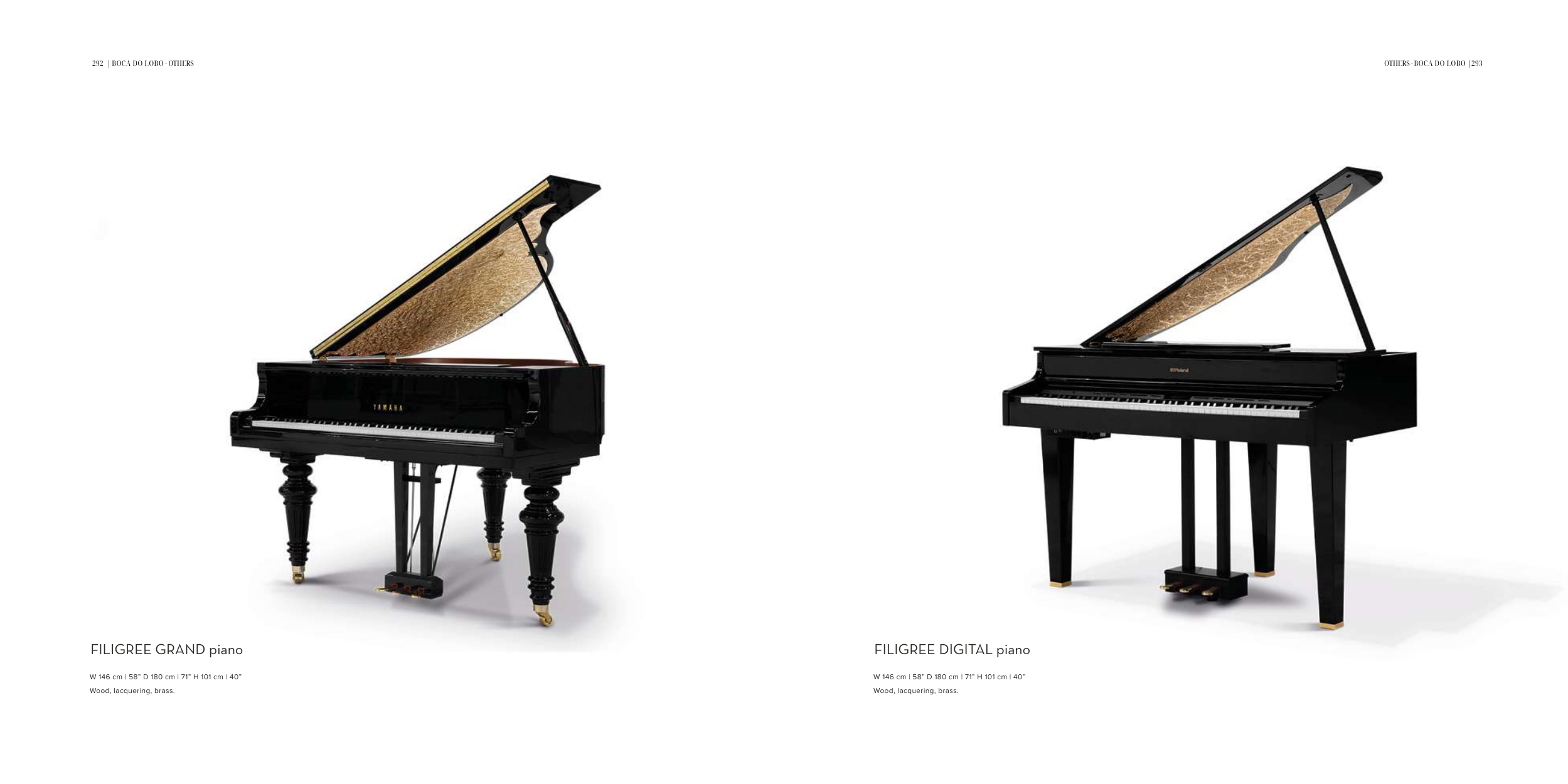 292 | BOCA DO LOBO 293 BOCA DO LOBO | W 146 cm | 58” D 180 cm | 71” H 101 cm | 40” Wood, lacquering, brass. FILIGREE GRAND piano W 146 cm | 58” D 180 cm | 71” H 101 cm | 40” Wood, lacquering, brass. FILIGREE DIGITAL piano - OTHERS OTHERS -