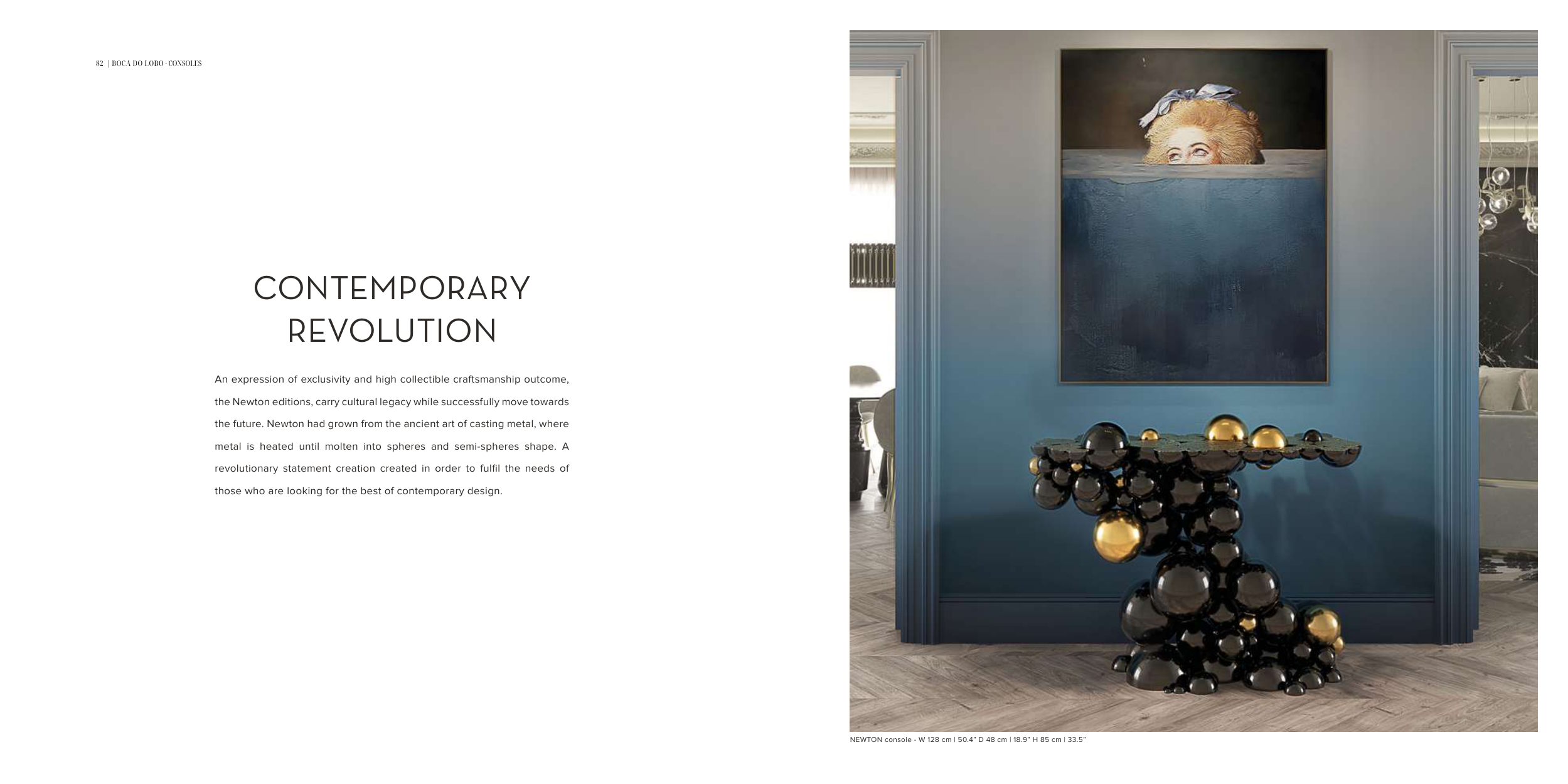 NEWTON console - W 128 cm | 50.4” D 48 cm | 18.9” H 85 cm | 33.5”