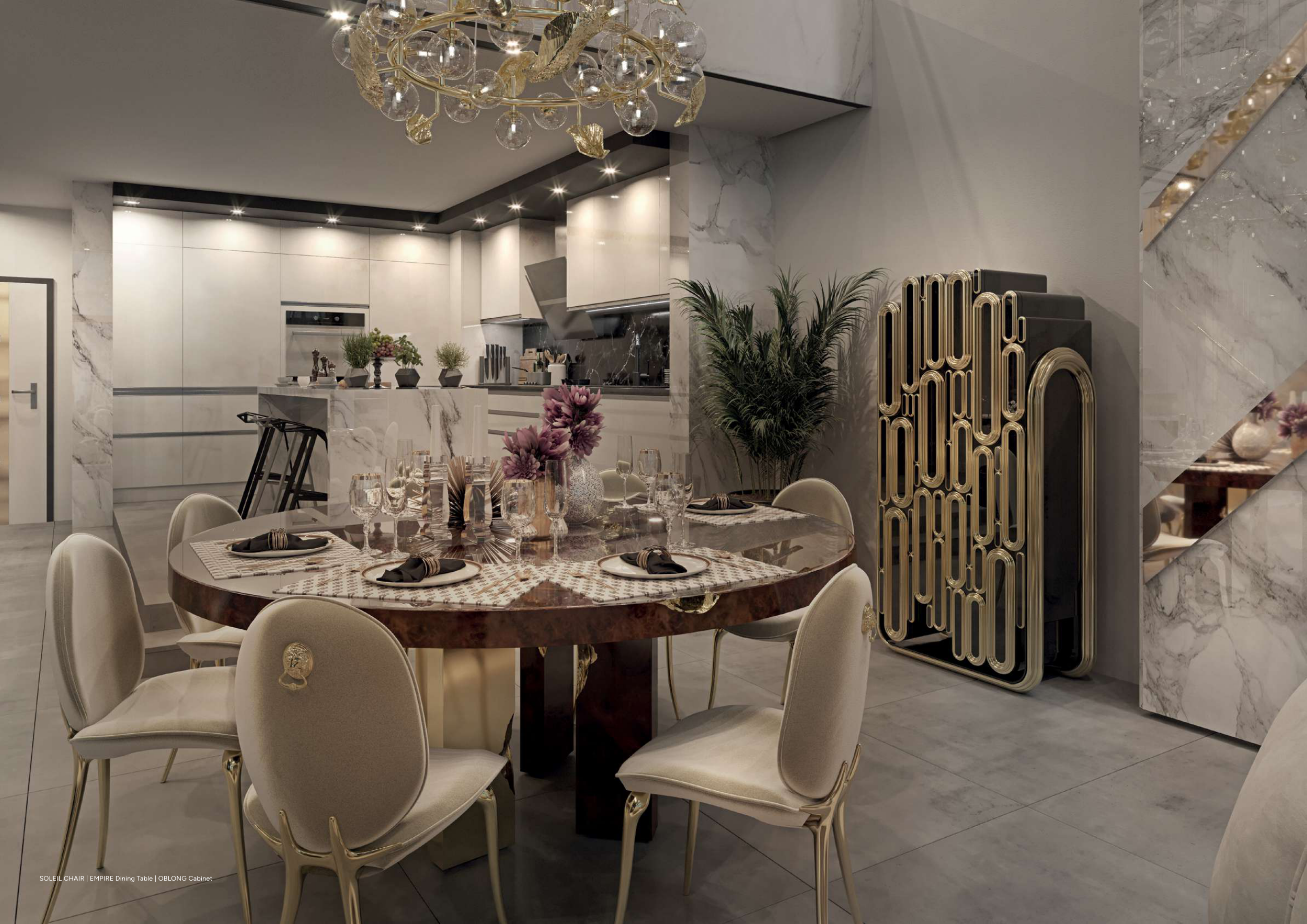 SOLEIL CHAIR | EMPIRE Dining Table | OBLONG Cabinet