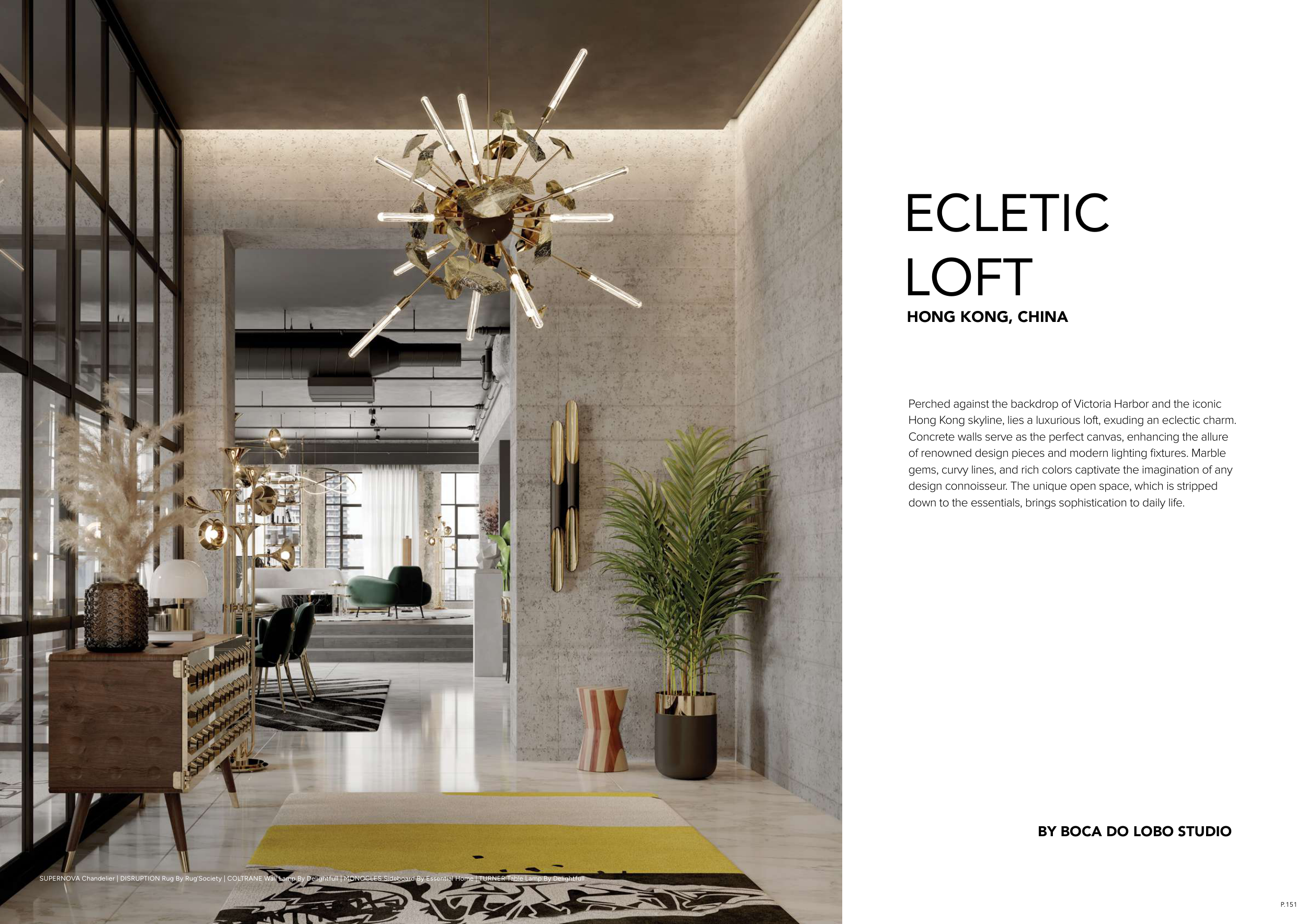 SUPERNOVA Chandelier | DISRUPTION Rug By Rug’Society | COLTRANE Wall Lamp By Delightfull | MONOCLES Sideboard By Essential Home | TURNER Table Lamp By Delightfull