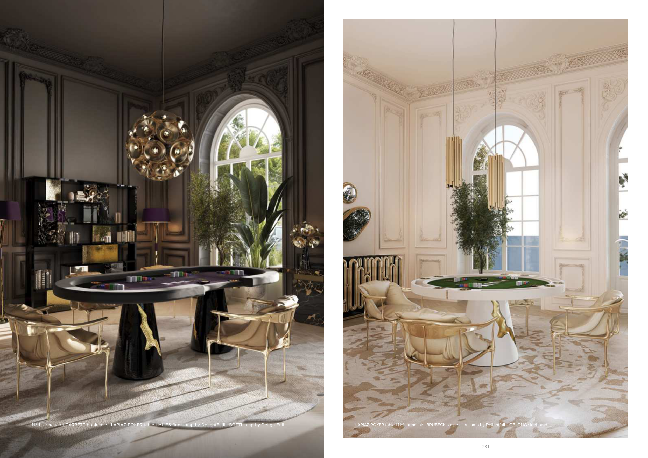 LAPIAZ POKER table | Nº11 armchair | BRUBECK suspension lamp by Delightfull | OBLONG sideboard