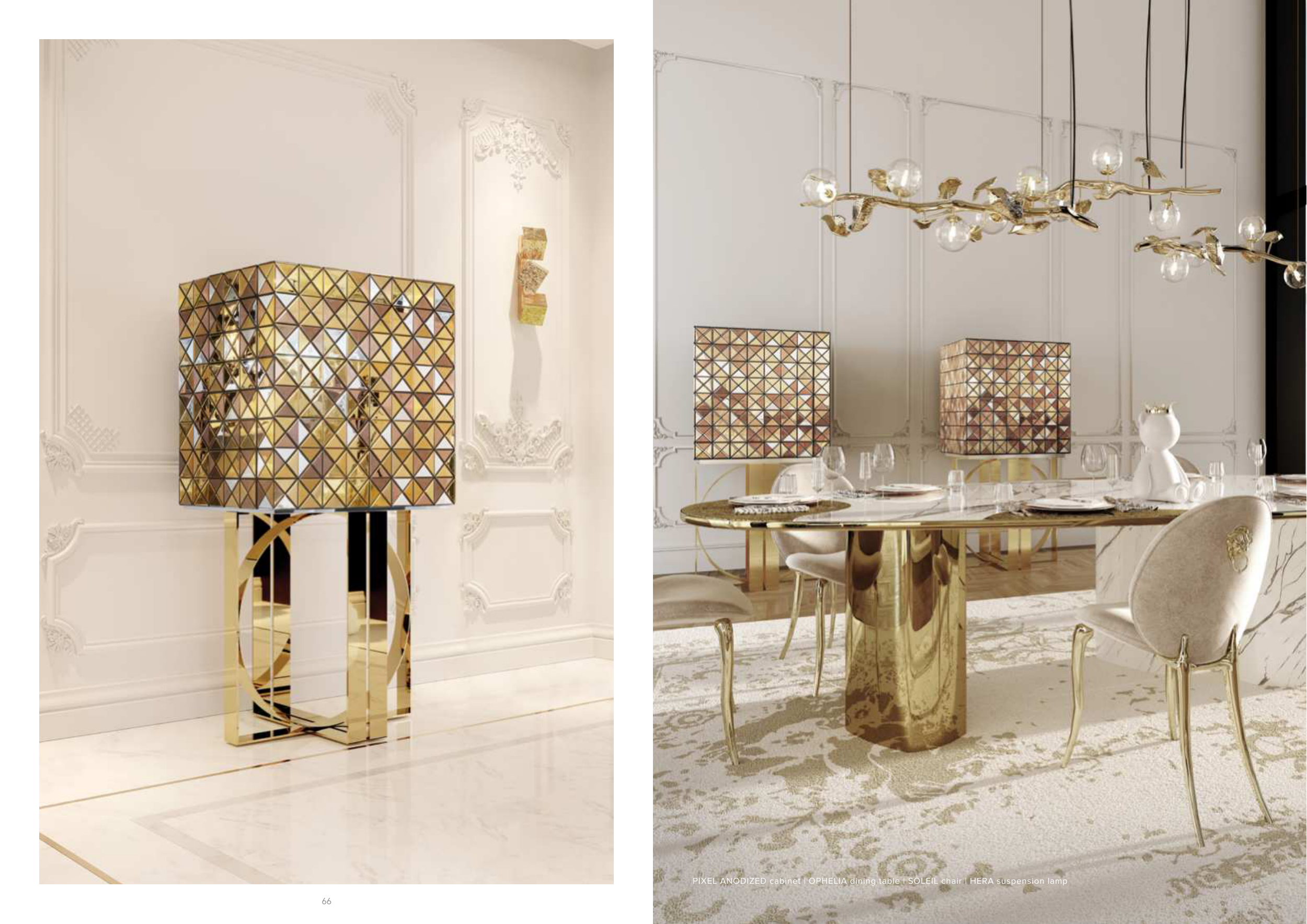 PIXEL ANODIZED cabinet | OPHELIA dining table | SOLEIL chair | HERA suspension lamp